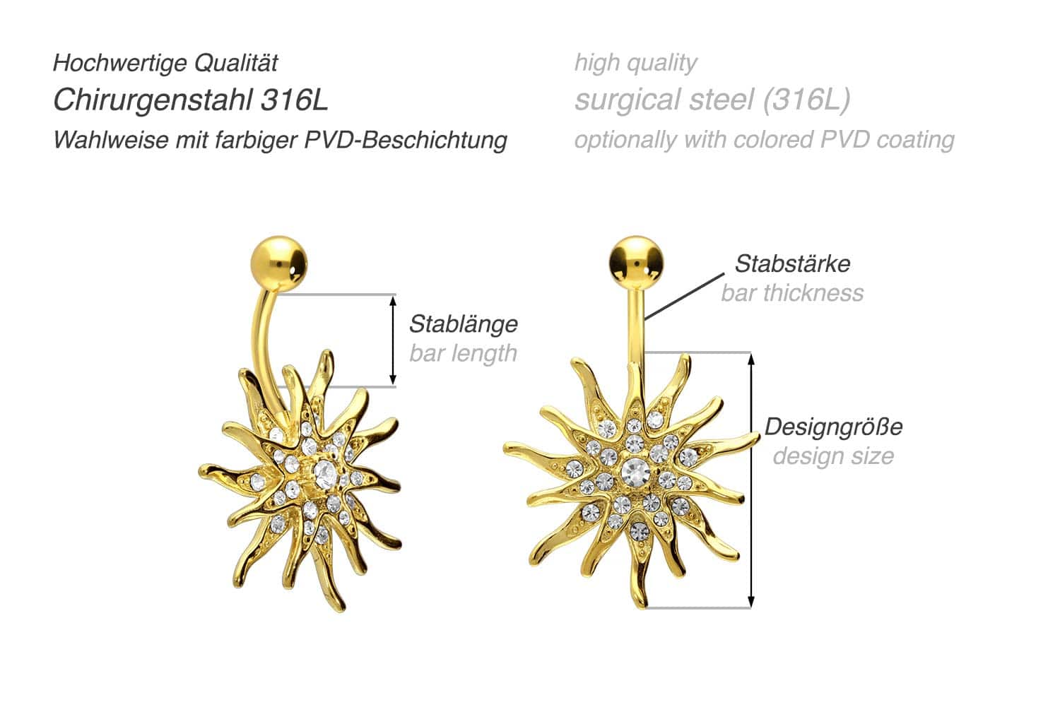 Surgical Steel 316L - Bellybutton Piercing Sun