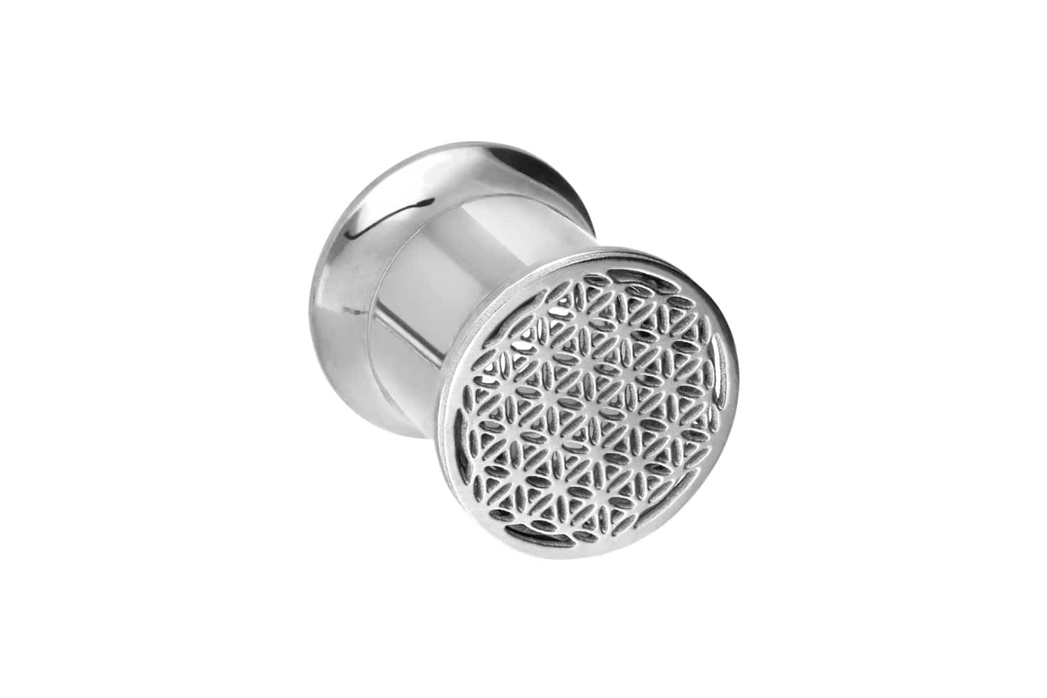 tunnel ensures a particularly good fit in the ear. There is an especially appealing design in the shape of the flower of life on the front of the piece of jewelry. It available in the outer diameters listed below.