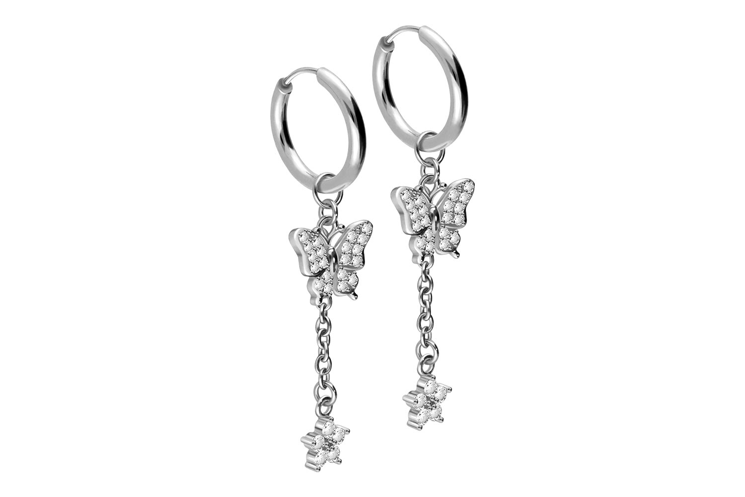 Surgical Steel 316L - Ear Clicker Creoles Crystal Butterfly + Crystal Flower