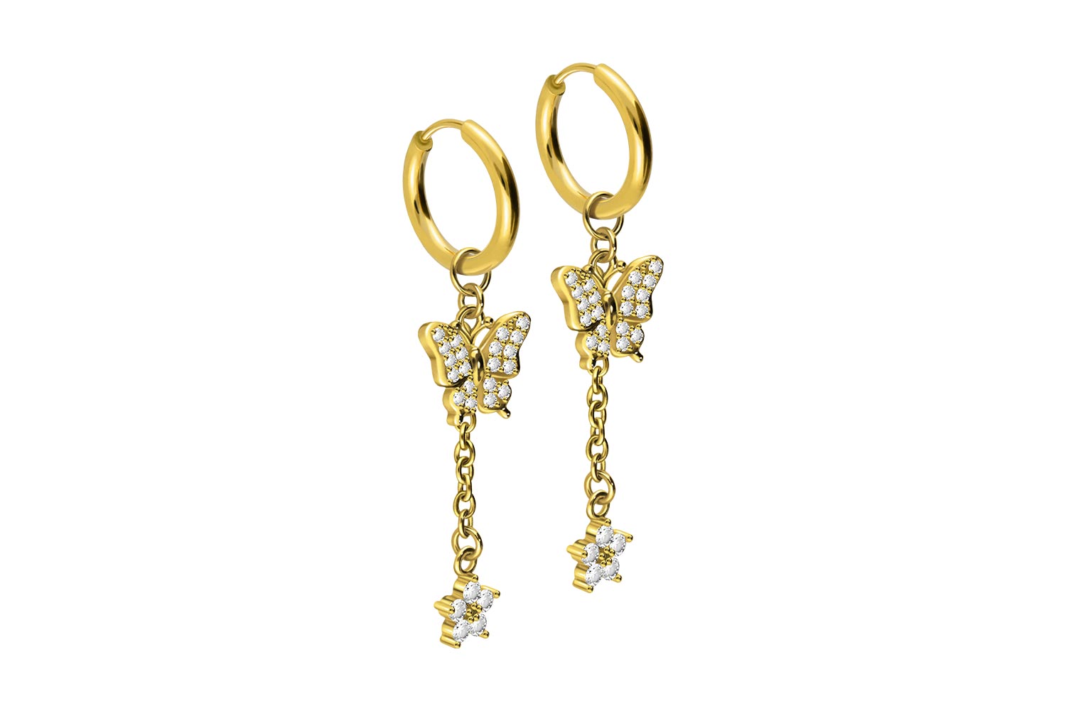 Surgical Steel 316L - Ear Clicker Creoles Crystal Butterfly + Crystal Flower