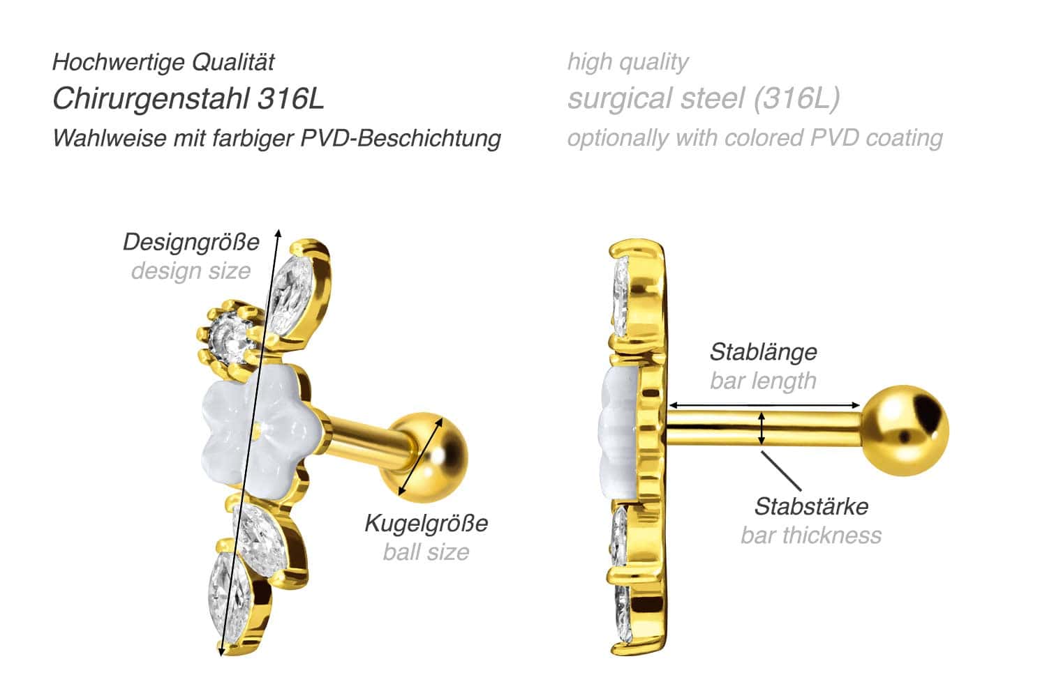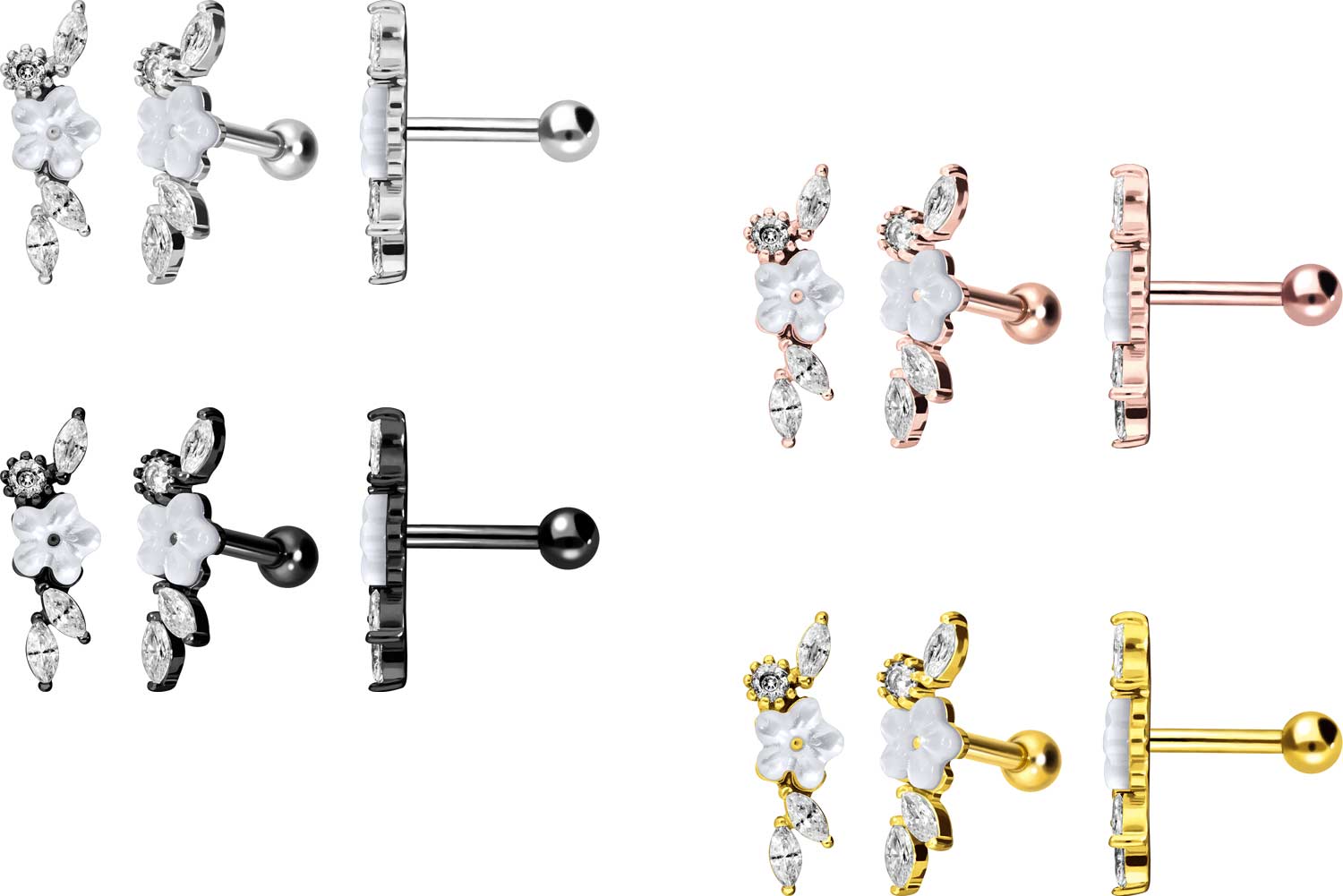 Surgical Steel 316L - Ear Piercing Flower + Crystal Leaves