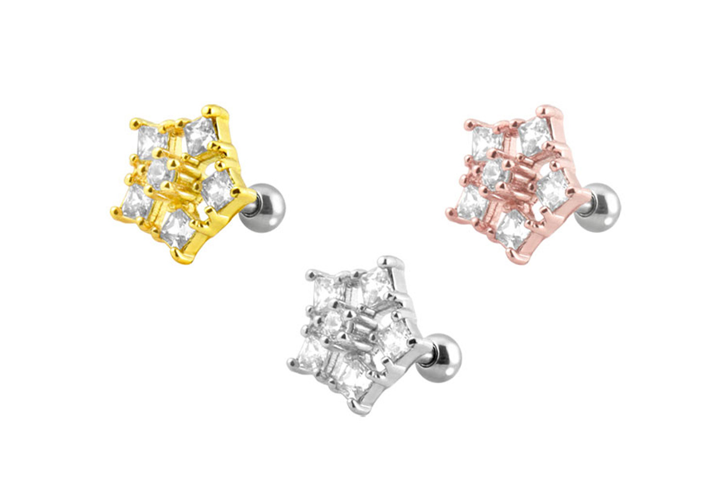 Surgical Steel 316L – Ear Piercing with Brass Design Crystal Flower