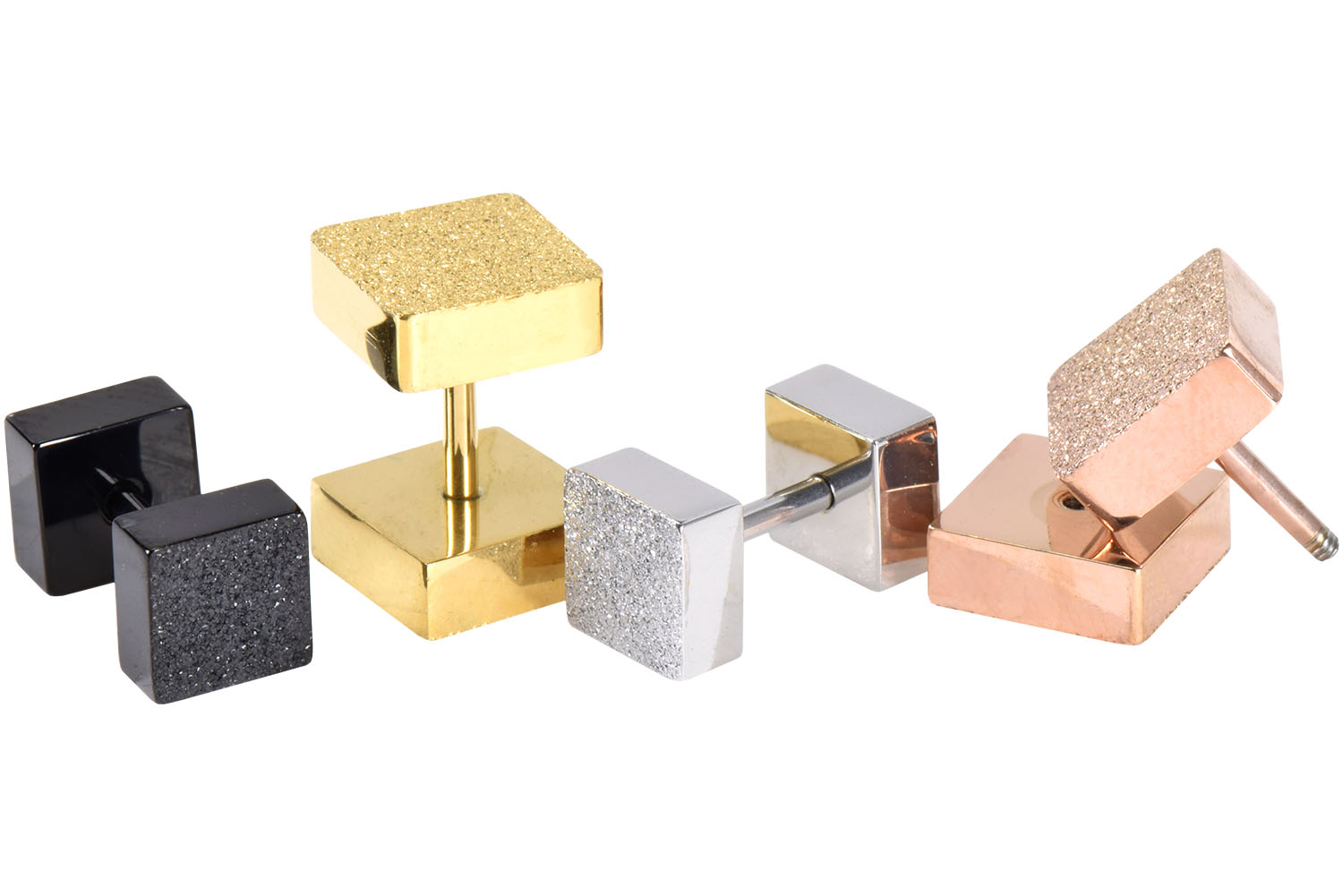 Dieser Fake Plug besteht aus hochwertigem Chirurgenstahl 316L, welches wahlweise mit einer farbigen PVD-Beschichtung versehen ist. Beide Discs sind als Quadrate gestaltet und mit einer edlen Diamantoptik versehen und machen den Fake Flug somit zu einem echten Hingucker. Ein Quadrat ist abschraubbar und ermöglicht so einen leichteren Einsatz des Fake Plugs. Das verwendete Stabmaterial (Chirurgenstahl 316L) zeichnet sich durch seine besonderen Eigenschaften wie Farbechtheit und Materialbeständigkeit aus. Dieses Piercing hat eine Stabstärke von 1,2 mm und ist mit mehreren Discgrößen erhältlich.