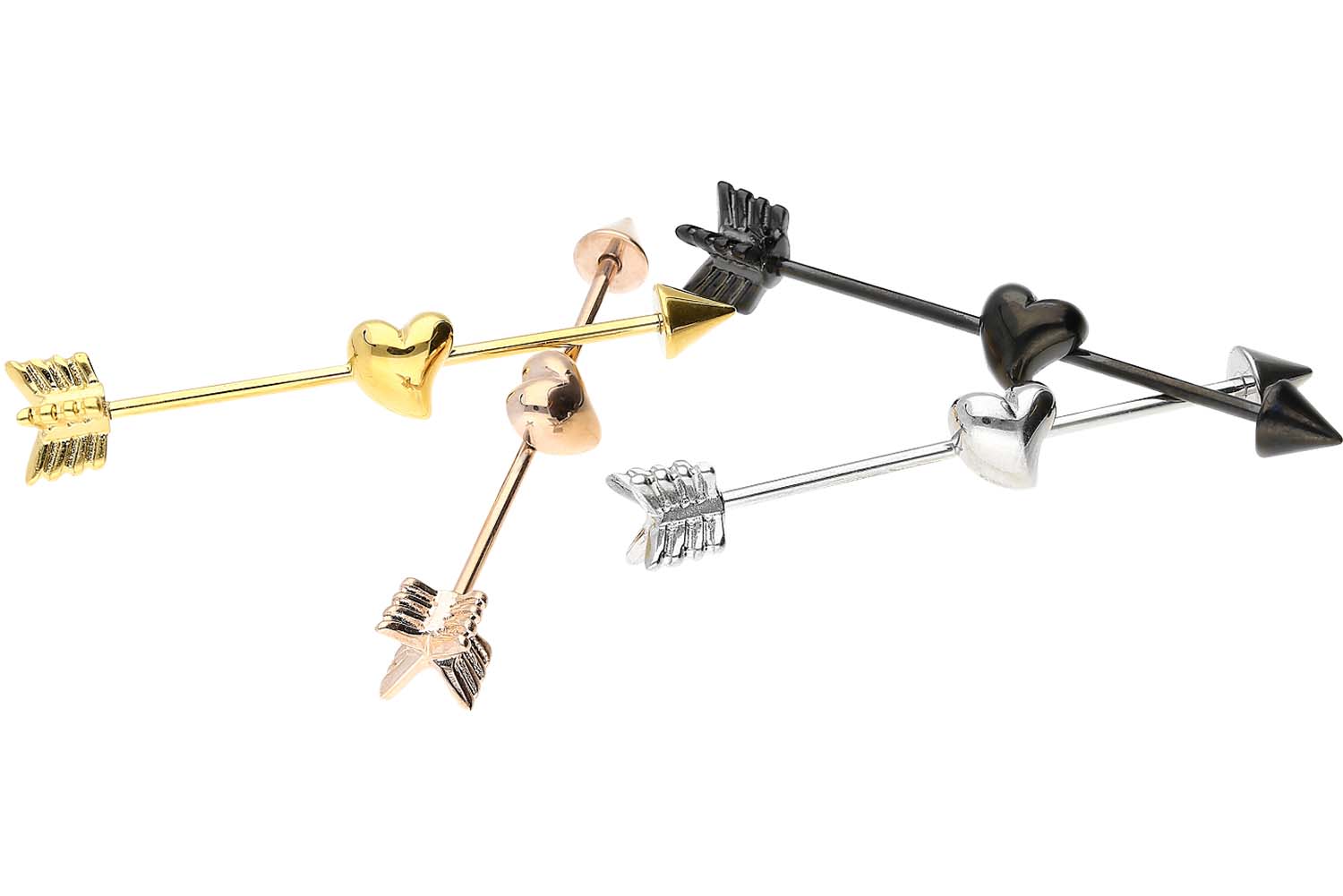 Surgical Steel 316L – Industrial Ear Piercing Arrow + Heart