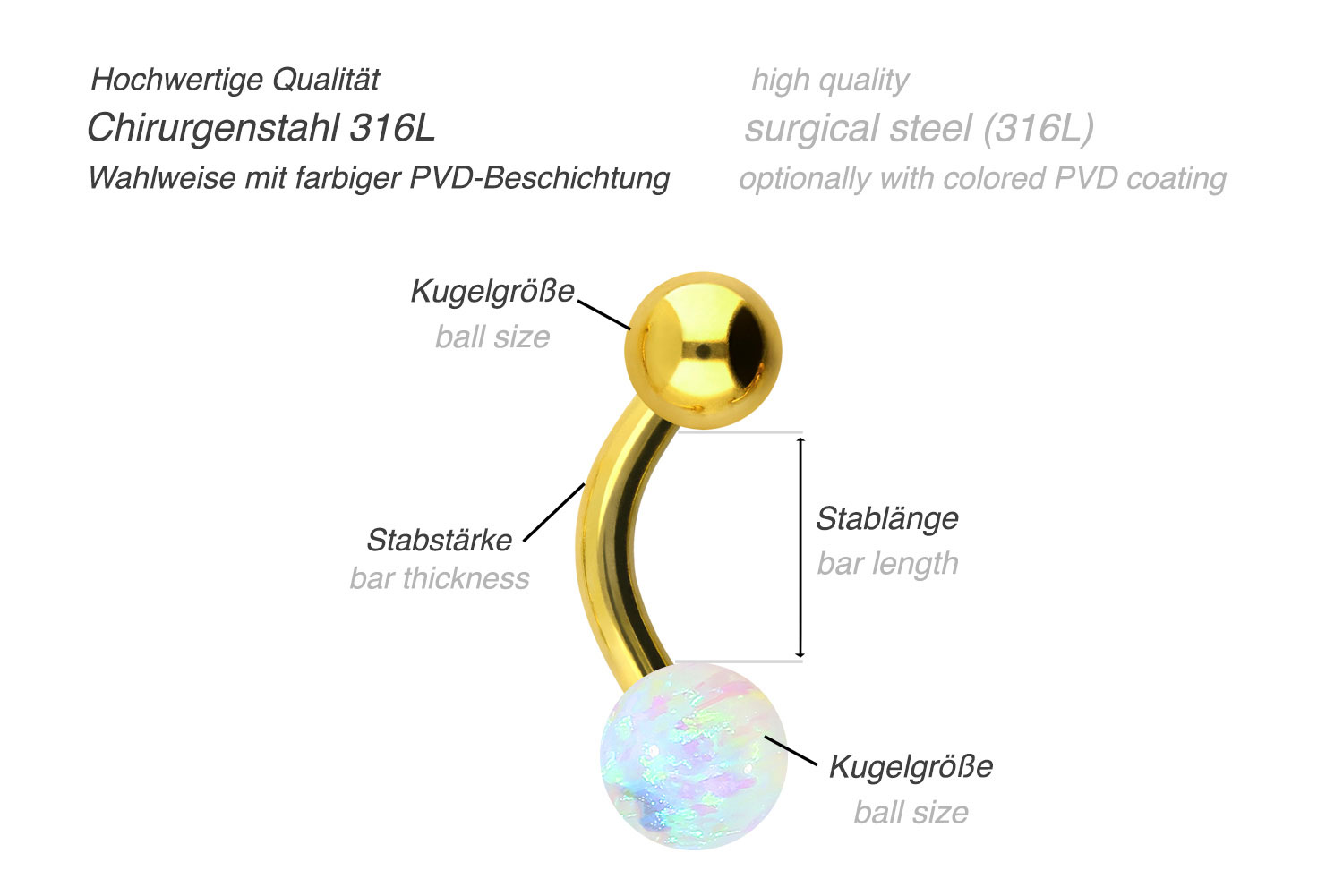 Surgical Steel 316L - Mini Bananabell synthetic Opal + Surgical Steel Ball