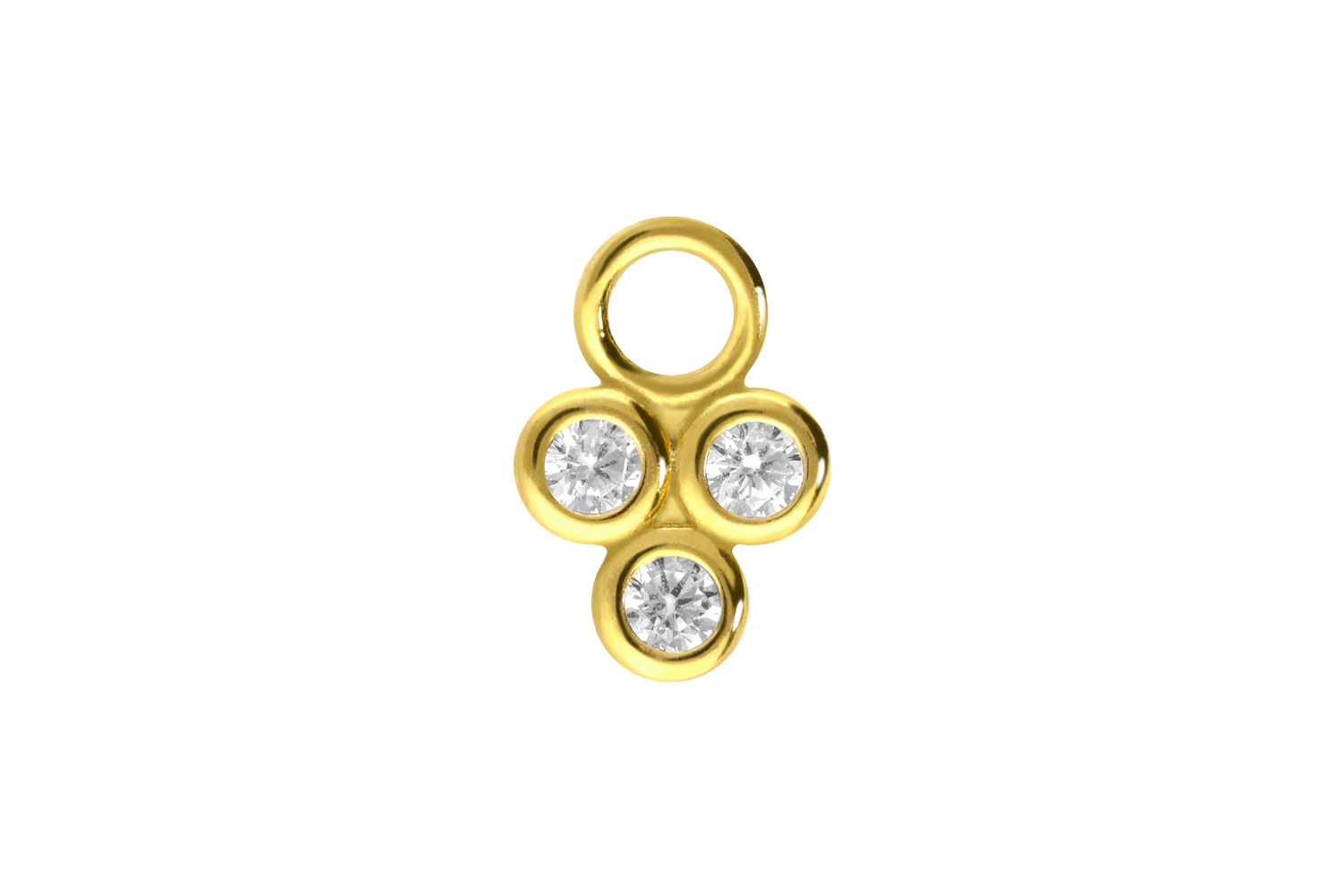 Clickers with a bar thickness from 0.8 mm to 2 mm are given an imaginative and thus also individual design thanks to our unique pendants! For this, the clicker must only be opened and the piece of jewelry attached. It is made of high quality surgical steel 316L, whose material properties include flat texture and high durability. On top of that, there is color fastness, guaranteed in the silver-colored as well as in the other variants with colored PVD coating. Thus, this delightful pendant in the shape of three crystals with settings becomes an excellent addition to any matching clicker!