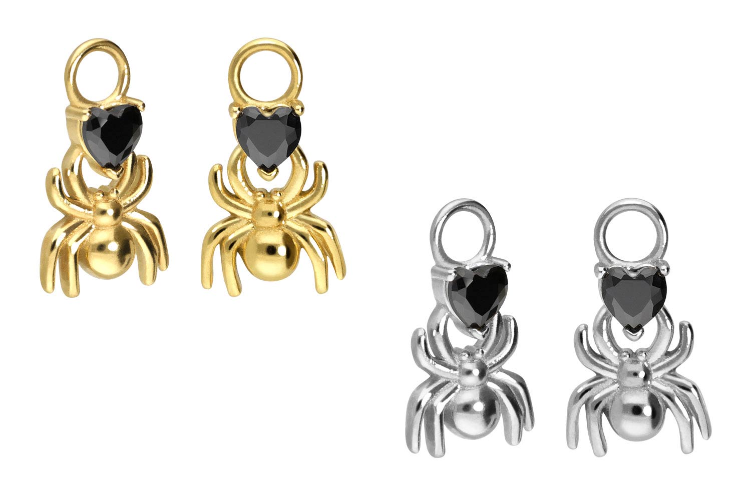 Clickers with a bar thickness from 0.8 mm to 2 mm are given an imaginative and thus also individual design thanks to our unique pendants! For this, the clicker must only be opened and the piece of jewelry attached. It is made of high quality surgical steel 316L, whose material properties include flat texture and high durability. On top of that, there is color fastness, guaranteed in the silver-colored as well as in the gold-colored version with PVD coating. Thus, this delightful pendant in the shape of a spider with a sparkling crystal heart becomes an excellent addition to any matching clicker!