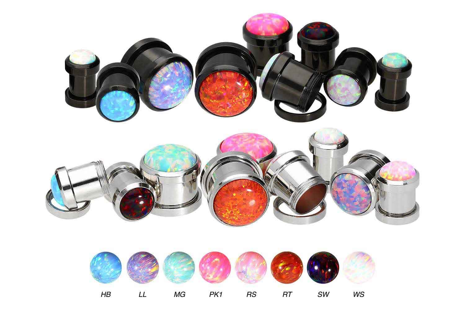Dieser einseitig abschraubbare Plug ist aus hochwertigem Chirurgenstahl 316L gefertigt und mit einem großen, synthetischen Opal besetzt. Dieser ist in verschiedenen Farben erhältlich und macht aus dem Accessoire ein absolut einzigartiges Schmuckstück. Das verwendete Material (Chirurgenstahl 316L) zeichnet sich durch seine besonderen Eigenschaften wie Farbechtheit und Materialbeständigkeit aus, was einen langen Tragespaß garantiert. Ein echter Hingucker. Jeder einzelne synthetische Opal ist das Ergebnis von aufwendiger Handarbeit und ist sicher auch deswegen eine Augenweide, die ihresgleichen sucht. Dieser Plug ist wahlweise mit einer schwarzen PVD-Beschichtung versehen.