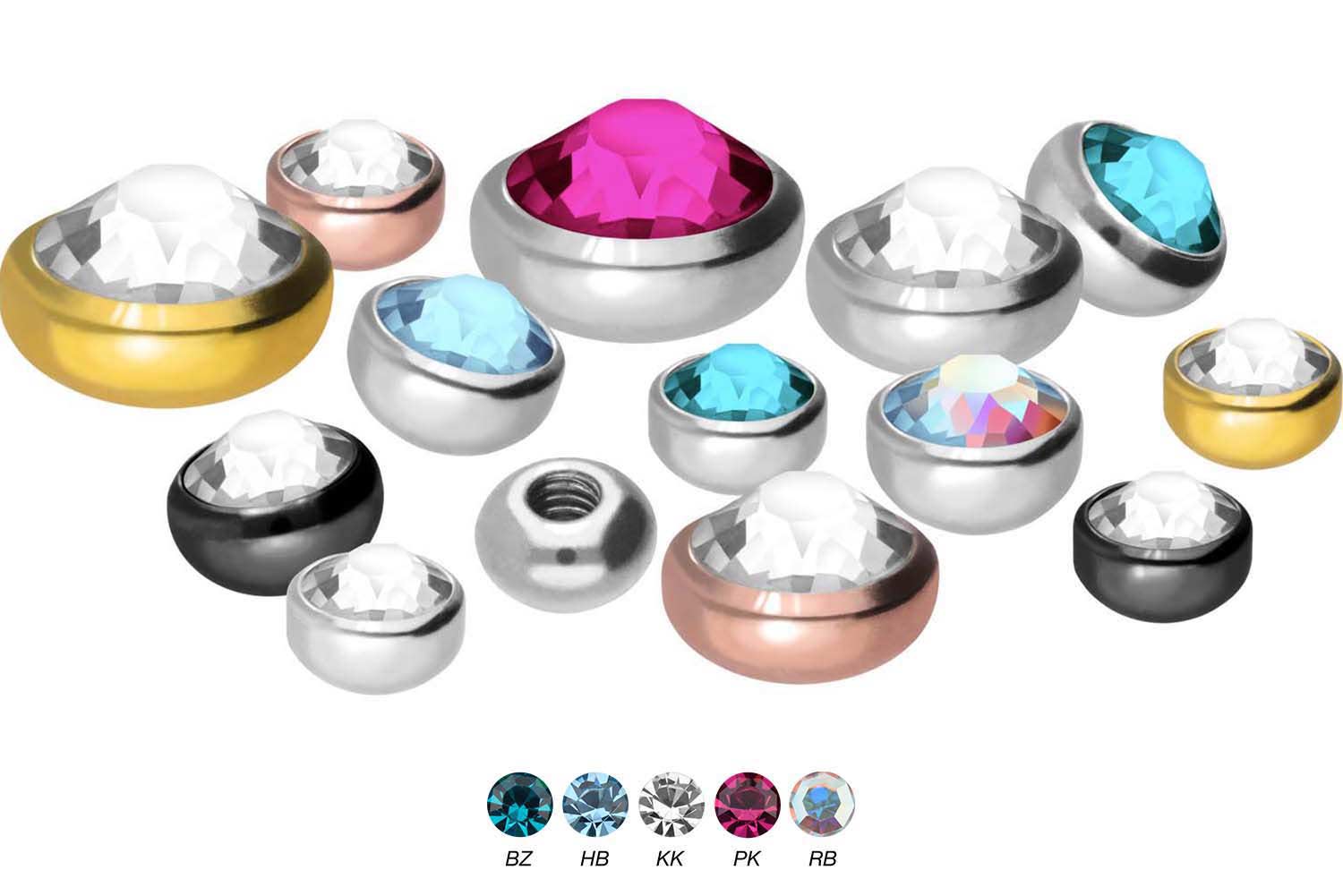 This flat screw-in disc with sparkling crystal is made of high quality surgical steel 316L, which is covered with a scratch-resistant PVD coating, depending on the color desired. Besides high quality, the material properties of surgical steel include flat texture and durability.