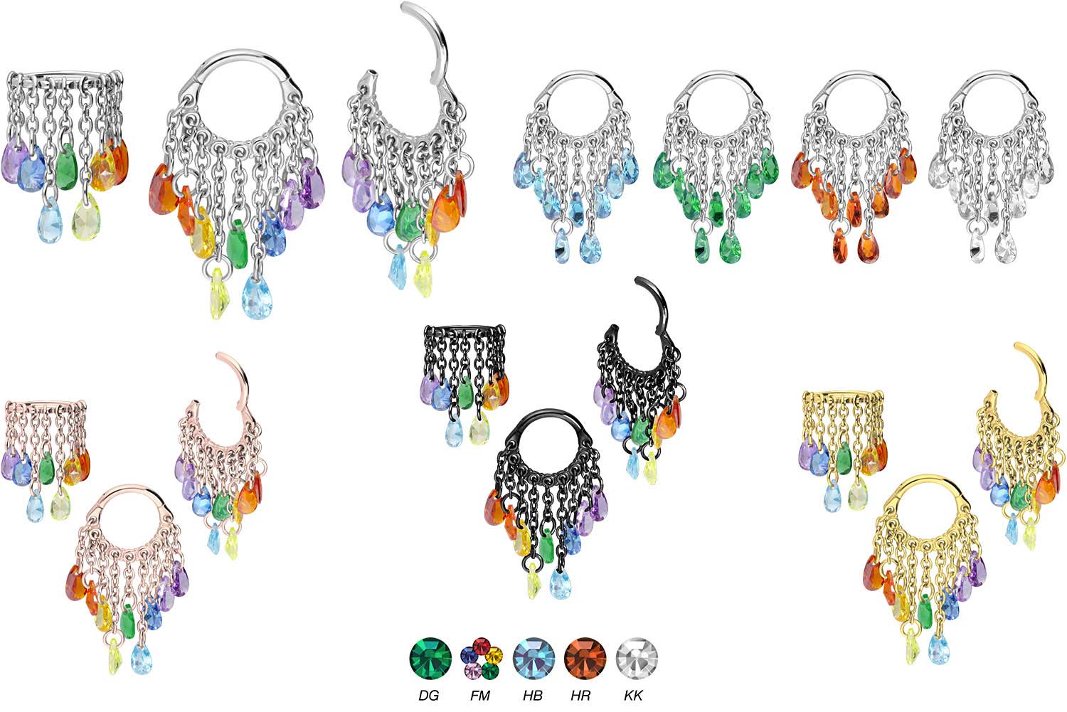 Surgical Steel 316L - Segment Ring Clicker Chain Curtain + Crystal Dropss