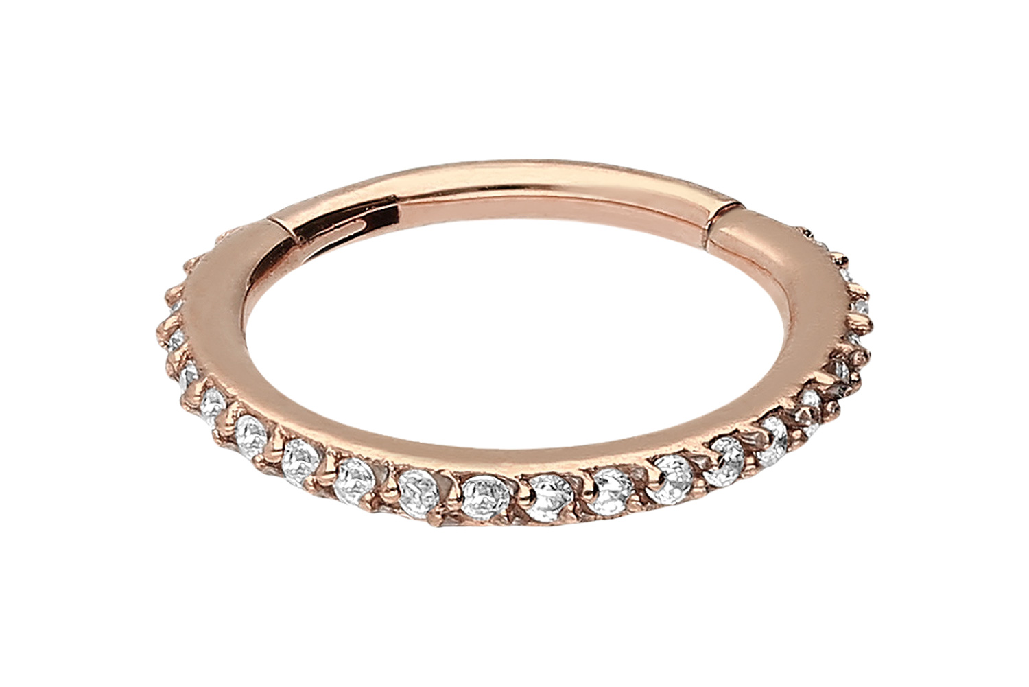 Easy handling and gorgeous design – that is what our clickers are all about! The main feature of the clickers is the practical hinge, which simplifies the piercing's insertion. The material used for manufacturing (surgical steel 316L) is characterized by its flatness and high quality. Depending on the desired color the piercing is covered with a scratch-resistant PVD coating. As a special highlight, wonderfully sparkling crystals with setting adorn the piece of jewelry. Whether at the ear, the nose or the lip – our clickers are suitable for a variety of different piercing locations.Material: surgical steel 316L