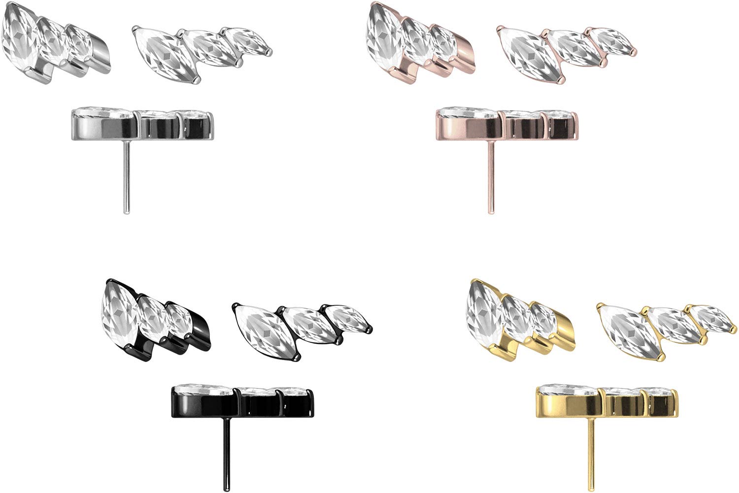 This unique push pin attachment in form of three set crystal drops was specially developed for our push fit piercings and is made of high quality