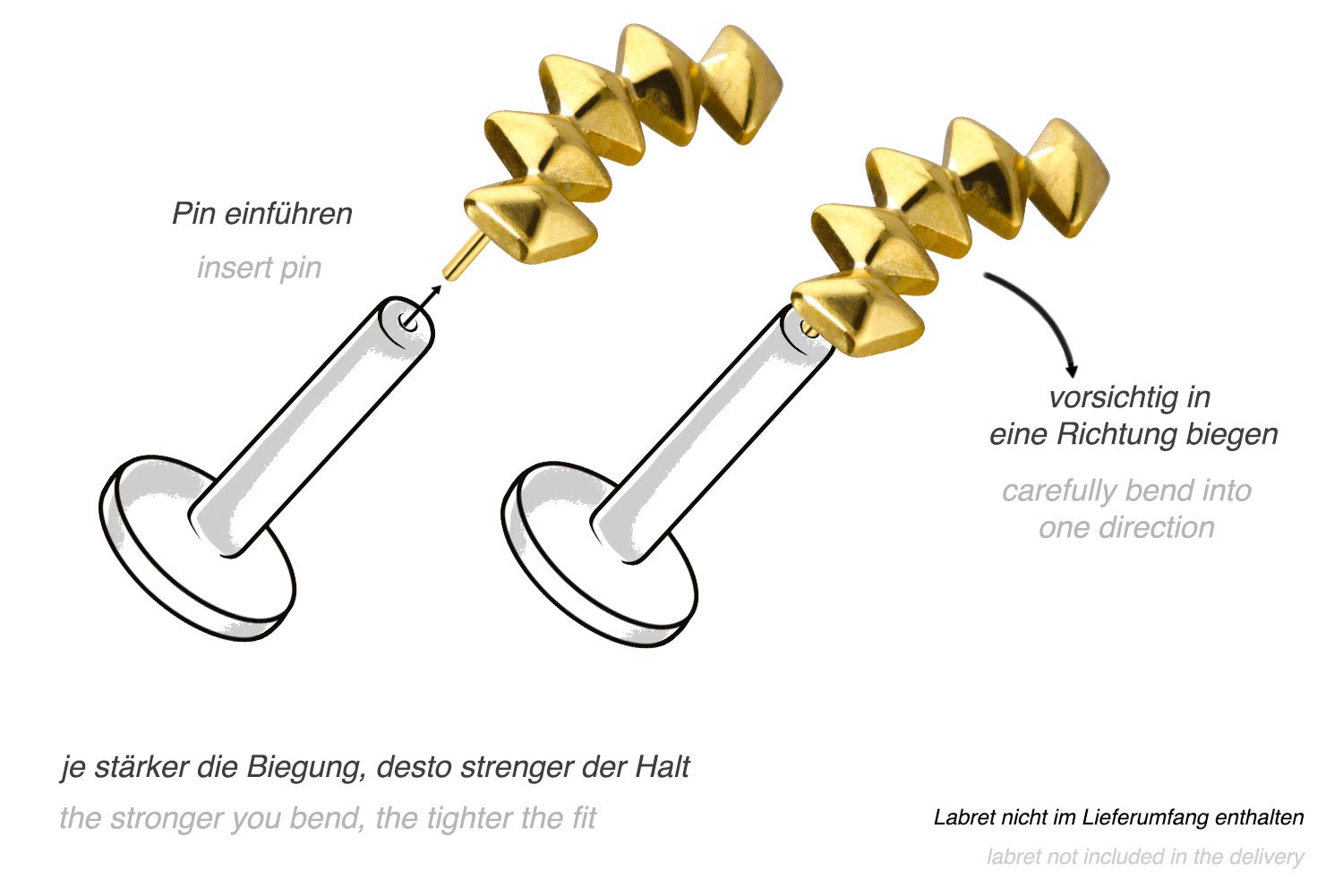This unique push pin attachment in the form of five rhombuses was specially developed for our push fit piercings and is made of high quality