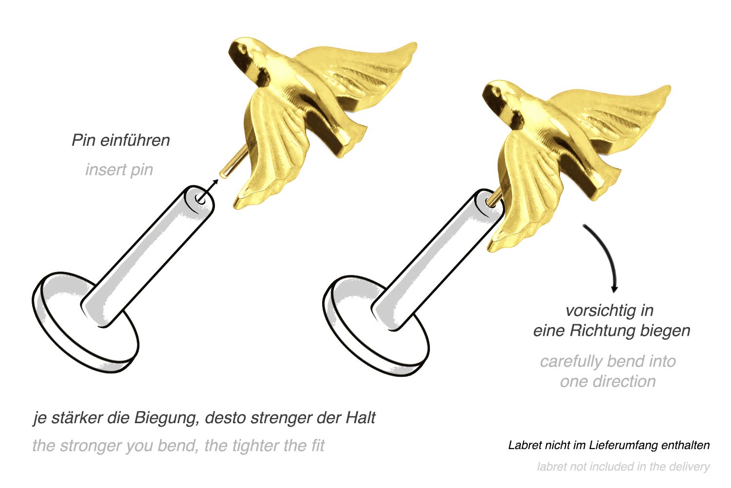 This unique push pin attachment in form of a dove was specially developed for our push fit piercings and is made of high quality