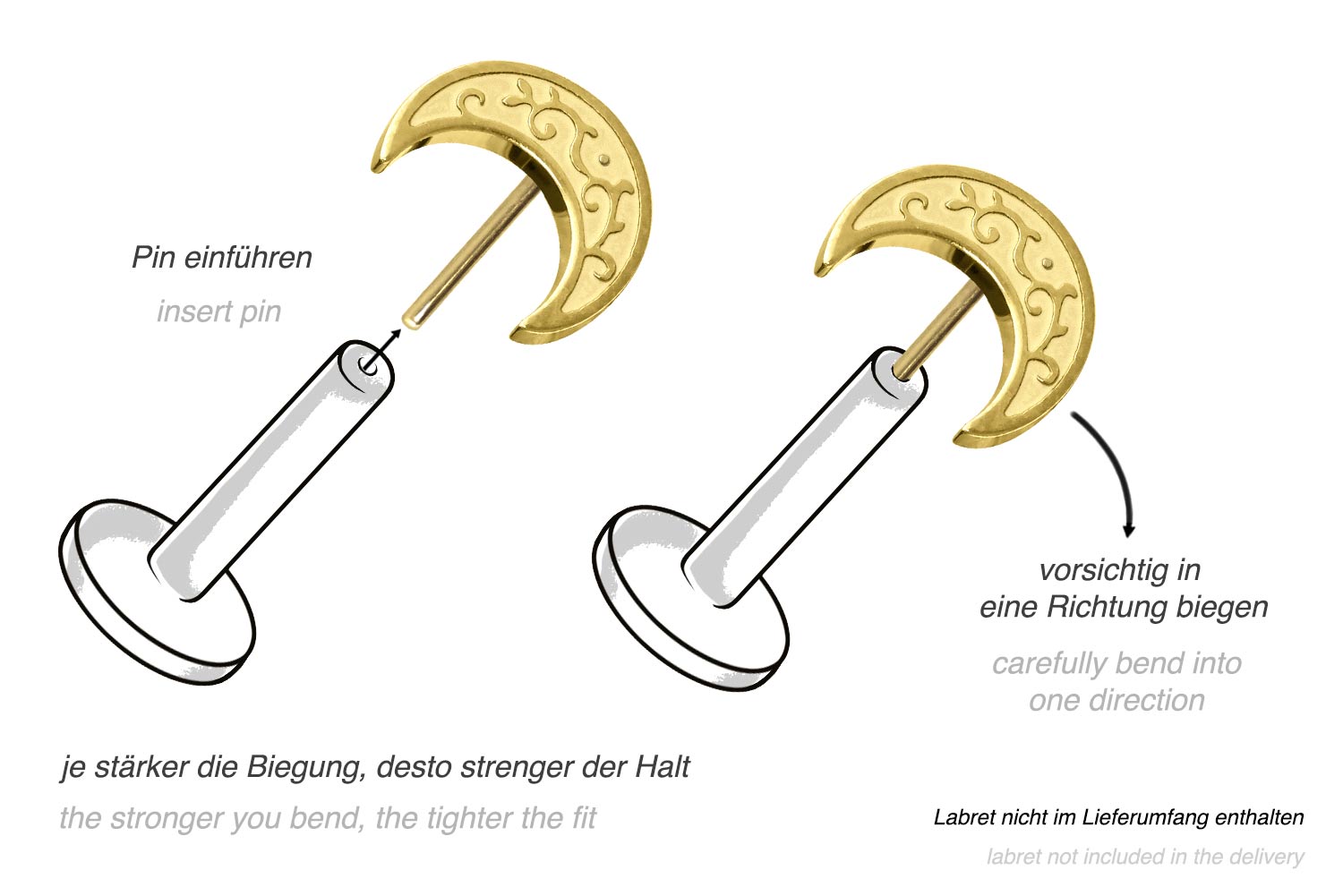 This unique push pin attachment in the form of a moon was specially developed for our push fit piercings and is made of high quality