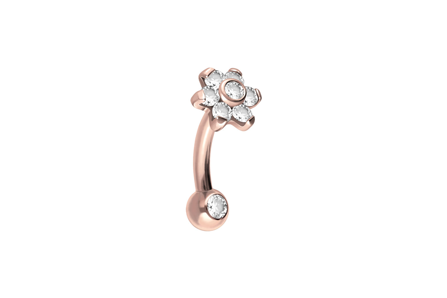 Titanium banana with push fit FLOWER WITH 7 CRYSTALS + CRYSTAL BALL