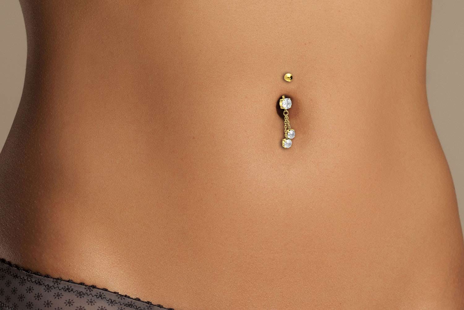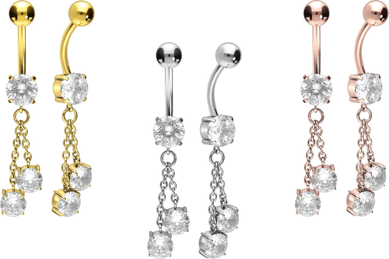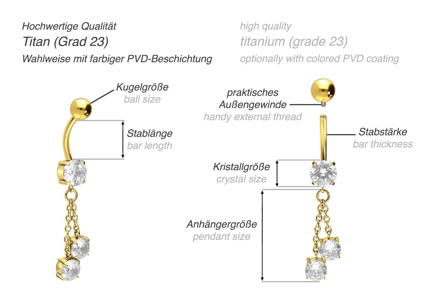 Titanium - Bellybutton Piercing with internal Thread 3 Crystals