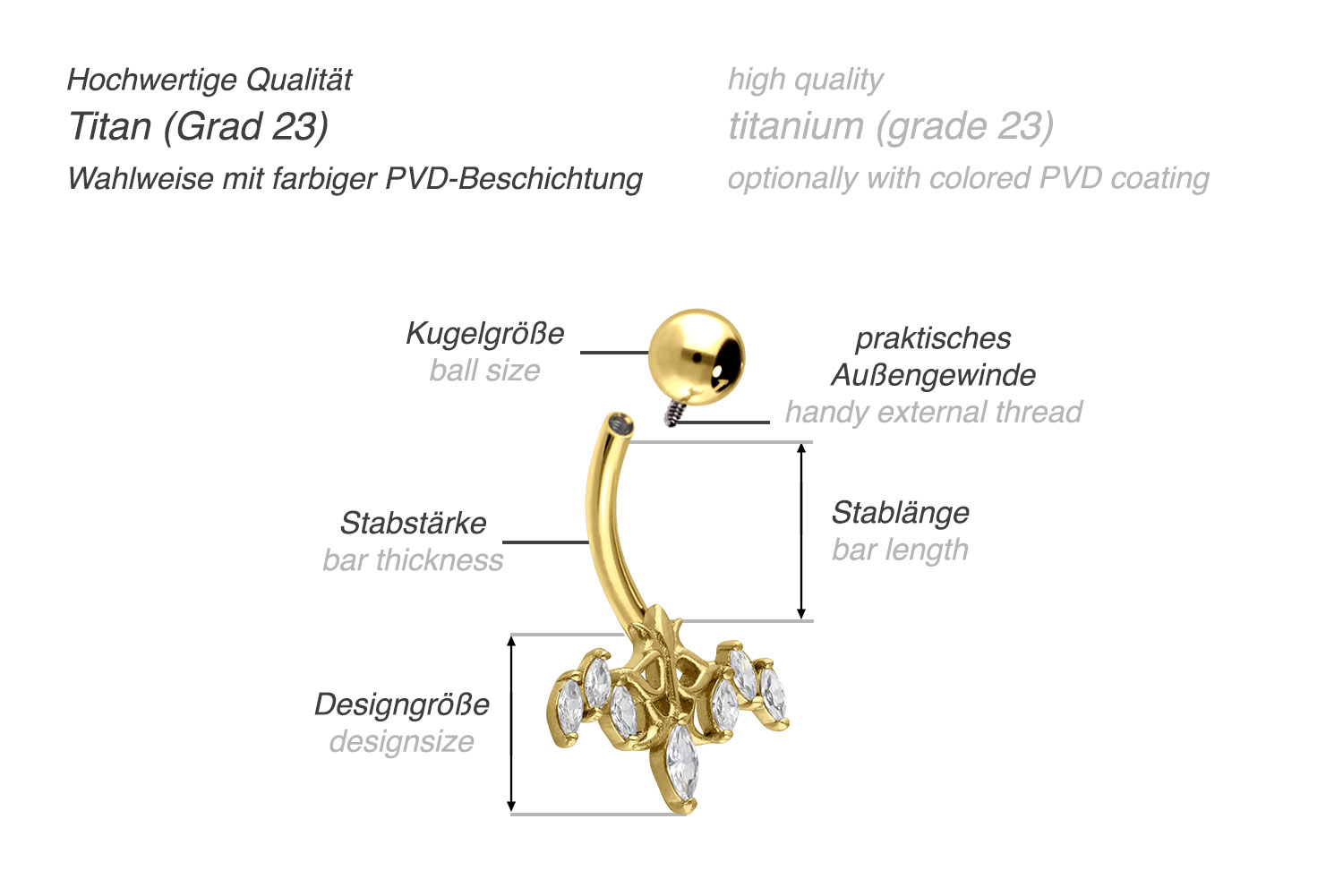 This bellybutton piercing is made of high quality titanium, whose