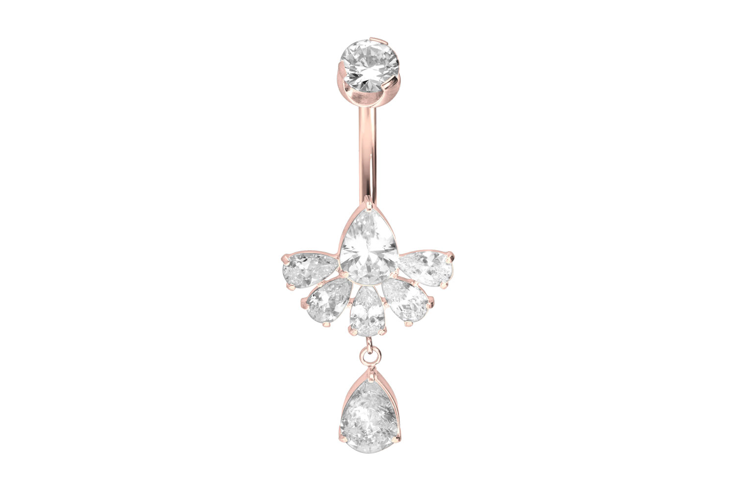 Titanium - Bellybutton Piercing with internal Thread Crystal Fan + Crystal Drop