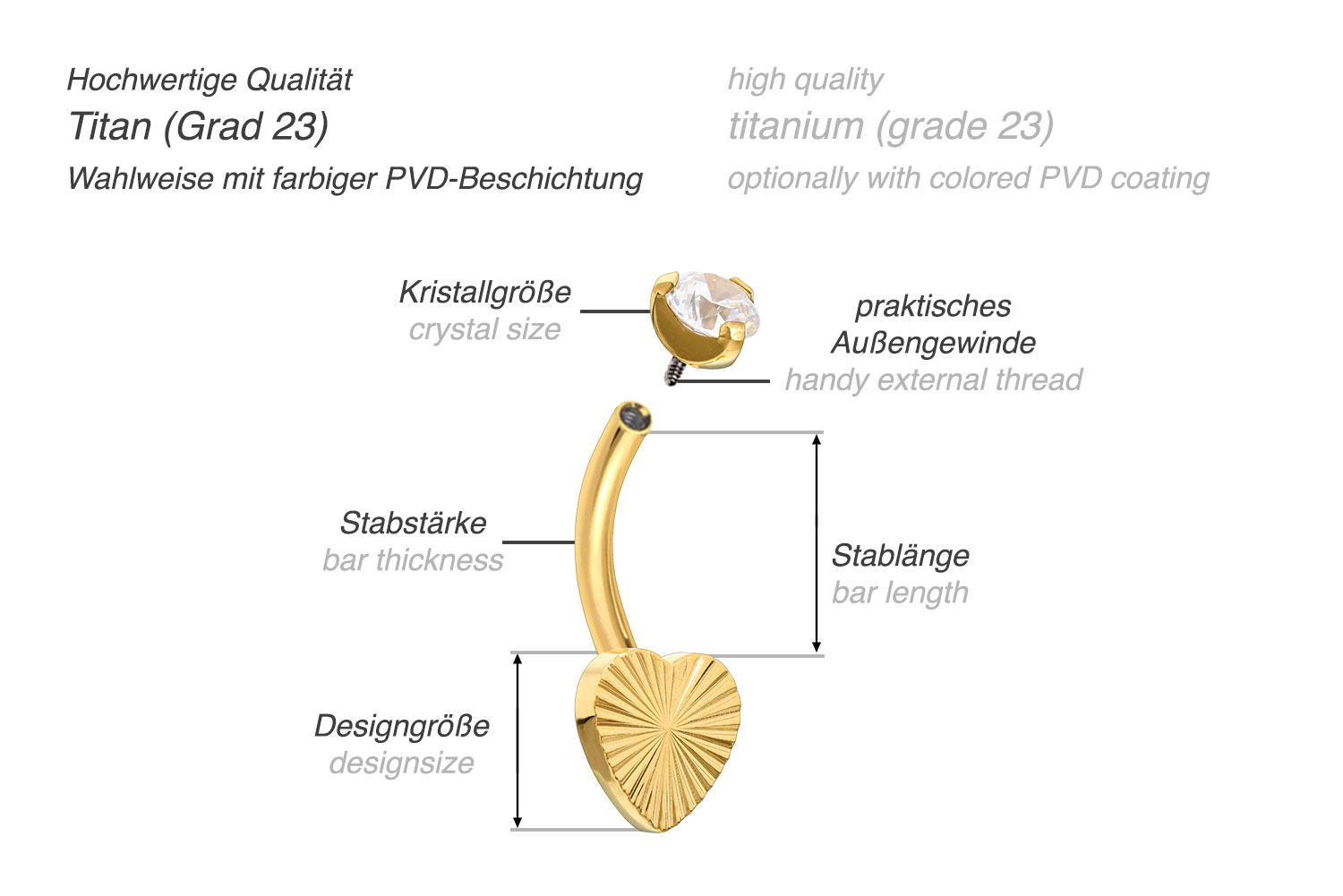 Titanium - Bellybutton Piercing with internal Thread Heart