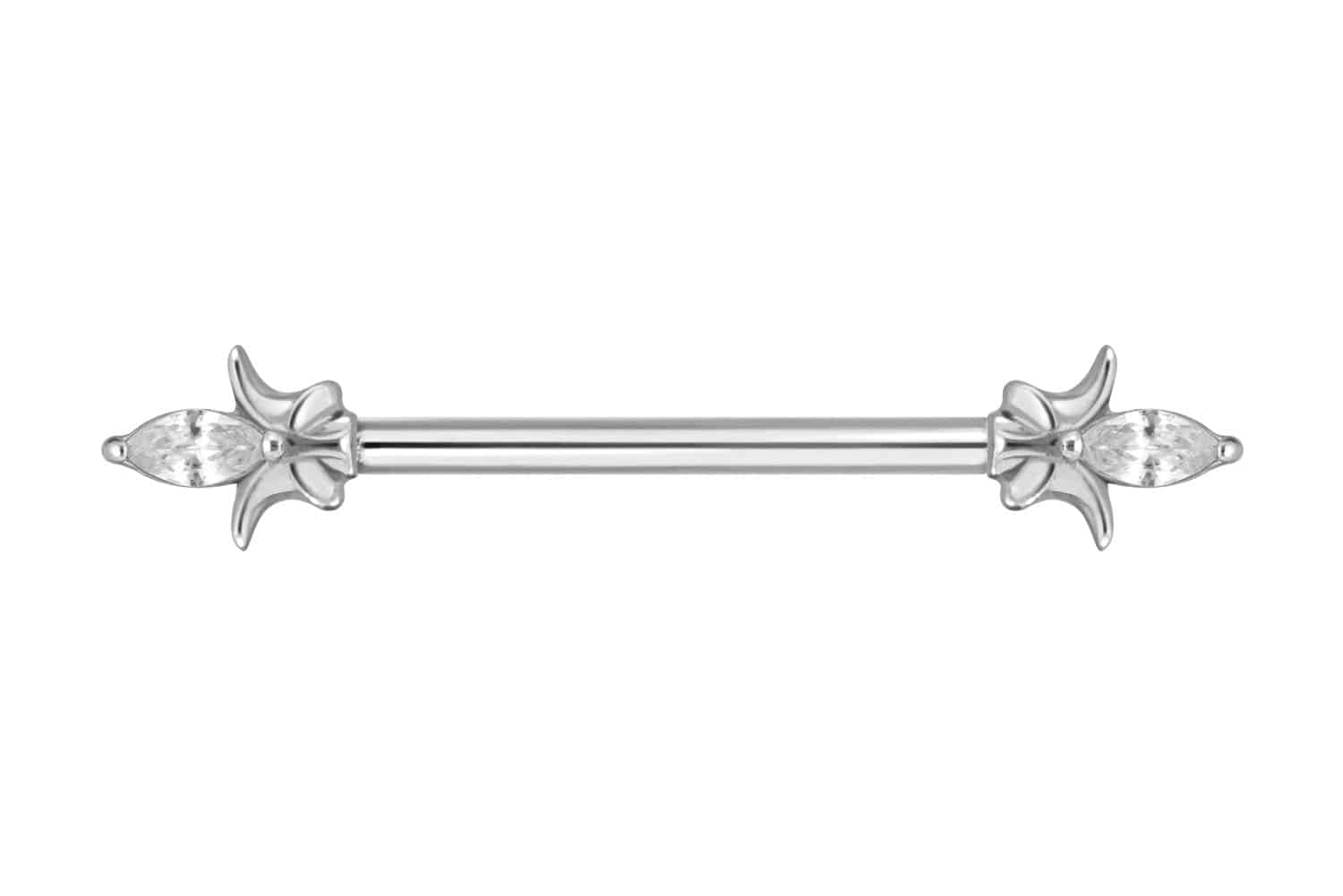 is supplied with a timelessly beautiful attachment with push pin in form of a crystal cone, has a bar thickness of