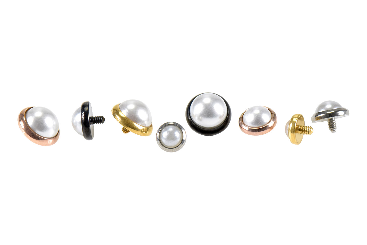 This timelessly beautiful attachment in the form of a plain disc with a synthetic pearl was specially developed for Dermal Anchors and is made of high quality titanium, which among other advantages is characterized by good skin compatibility and high durability. Also one of its specific material properties is color fastness, guaranteed in the silver-colored variant as well as in the black, gold and rosegold-colored variants with PVD coating. Thanks to the 1.2 mm thick thread, a variety of combinations with the Dermal Anchors from our versatile range is furthermore possible.