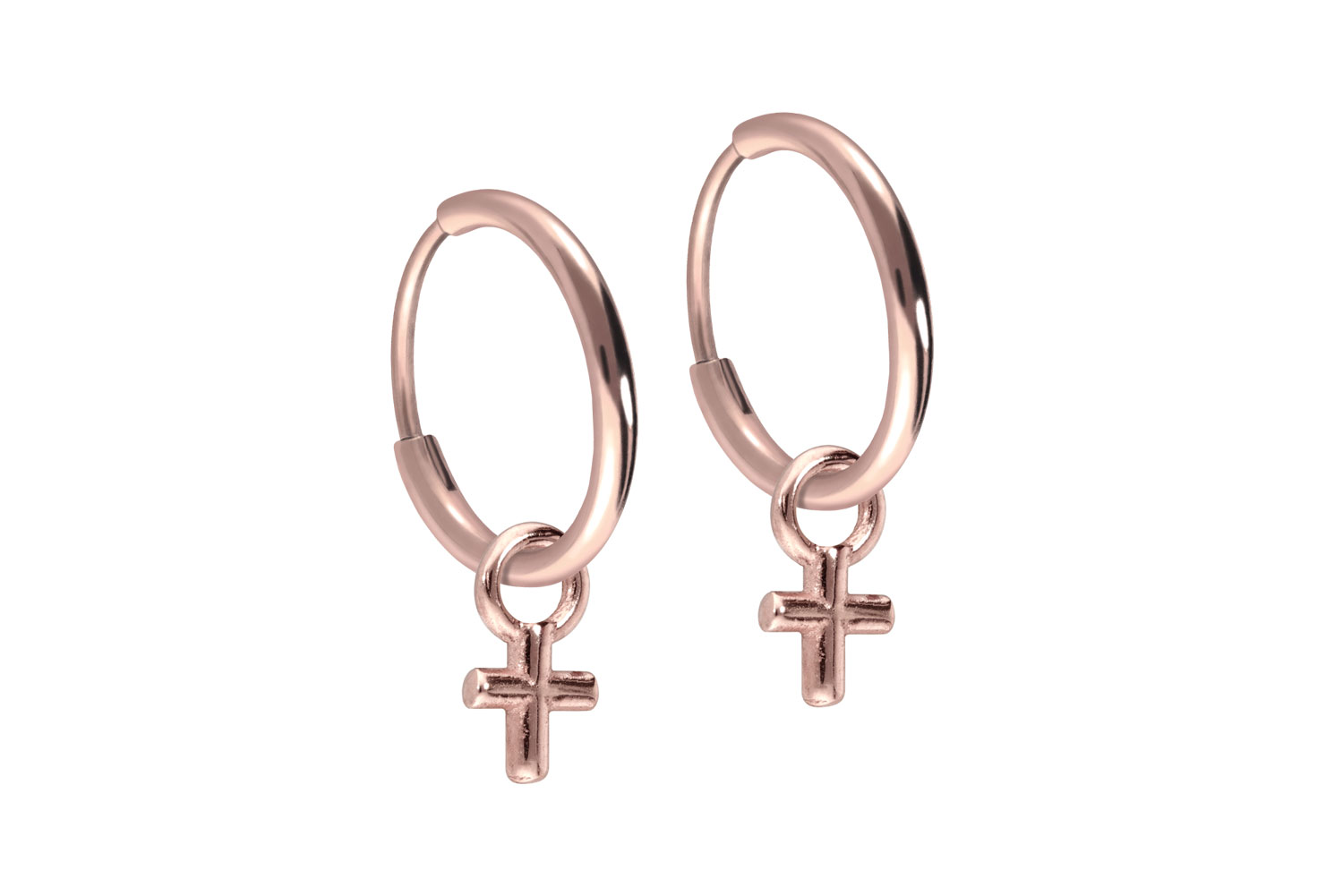 These timelessly beautiful ear clickers are made of high quality titanium, whose specific material properties include particularly good skin compatibility and high durability. Another characteristic of our clickers is the practical hinge, which makes the use of them much easier. If desired, a scratch-resistant PVD coating provides a powerful color of choice, further enhanced by the highly polished surface. As a visual highlight, a pendant showing a cross is hooked into each creole. Their insertable part has a bar thickness of 0.8 mm, whereas their visible design has a thickness of either 1.2 or 1.6 mm. The creoles are supplied in pairs as depicted.Material: titanium (grade 23)