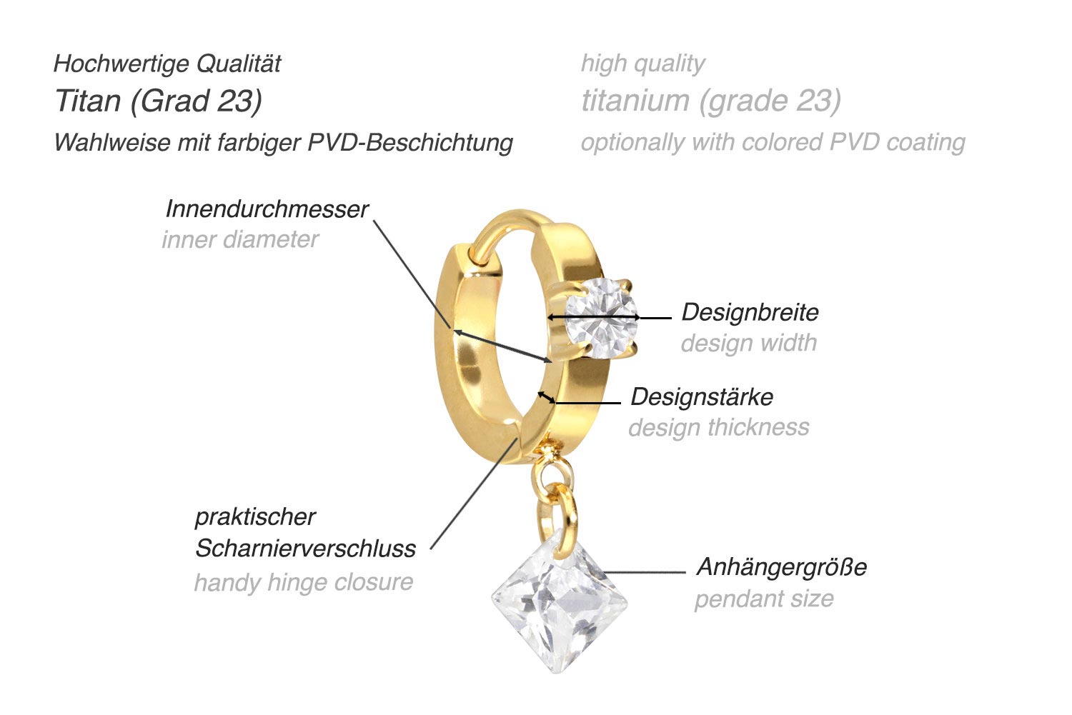 These timelessly beautiful ear clickers are made of high quality titanium, whose specific material properties include particularly good skin compatibility and high durability. Another characteristic of our clickers is the practical hinge, which makes the use of them much easier. If desired, a scratch-resistant PVD coating provides a powerful color of choice, further enhanced by the highly polished surface. Supplied in pairs as shown.