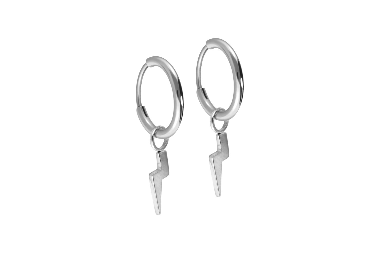 These timelessly beautiful ear clickers are made of high quality titanium, whose specific material properties include particularly good skin compatibility and high durability. Another characteristic of our clickers is the practical hinge, which makes the use of them much easier. If desired, a scratch-resistant PVD coating provides a powerful color of choice, further enhanced by the highly polished surface. As a visual highlight, a pendant showing a lightning is hooked into each creole. Their insertable part has a bar thickness of 0.8 mm, whereas their visible design has a thickness of either 1.2 or 1.6 mm. The creoles are supplied in pairs as depicted.Material: titanium (grade 23)