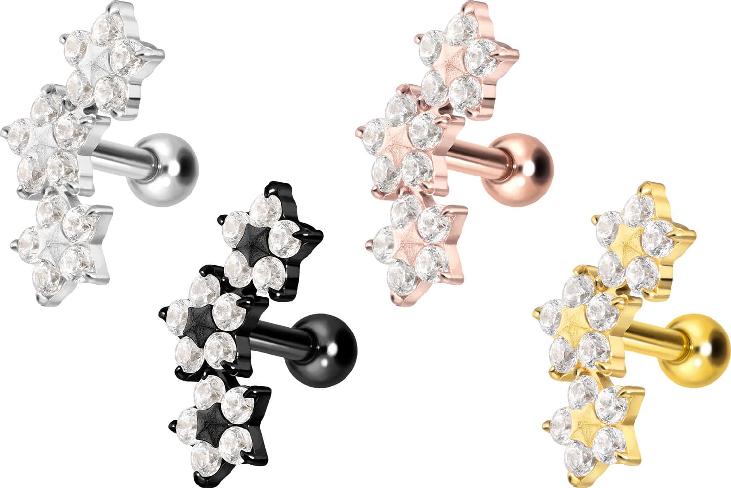 Titanium ear piercing with internal thread 3 CRYSTAL FLOWERS