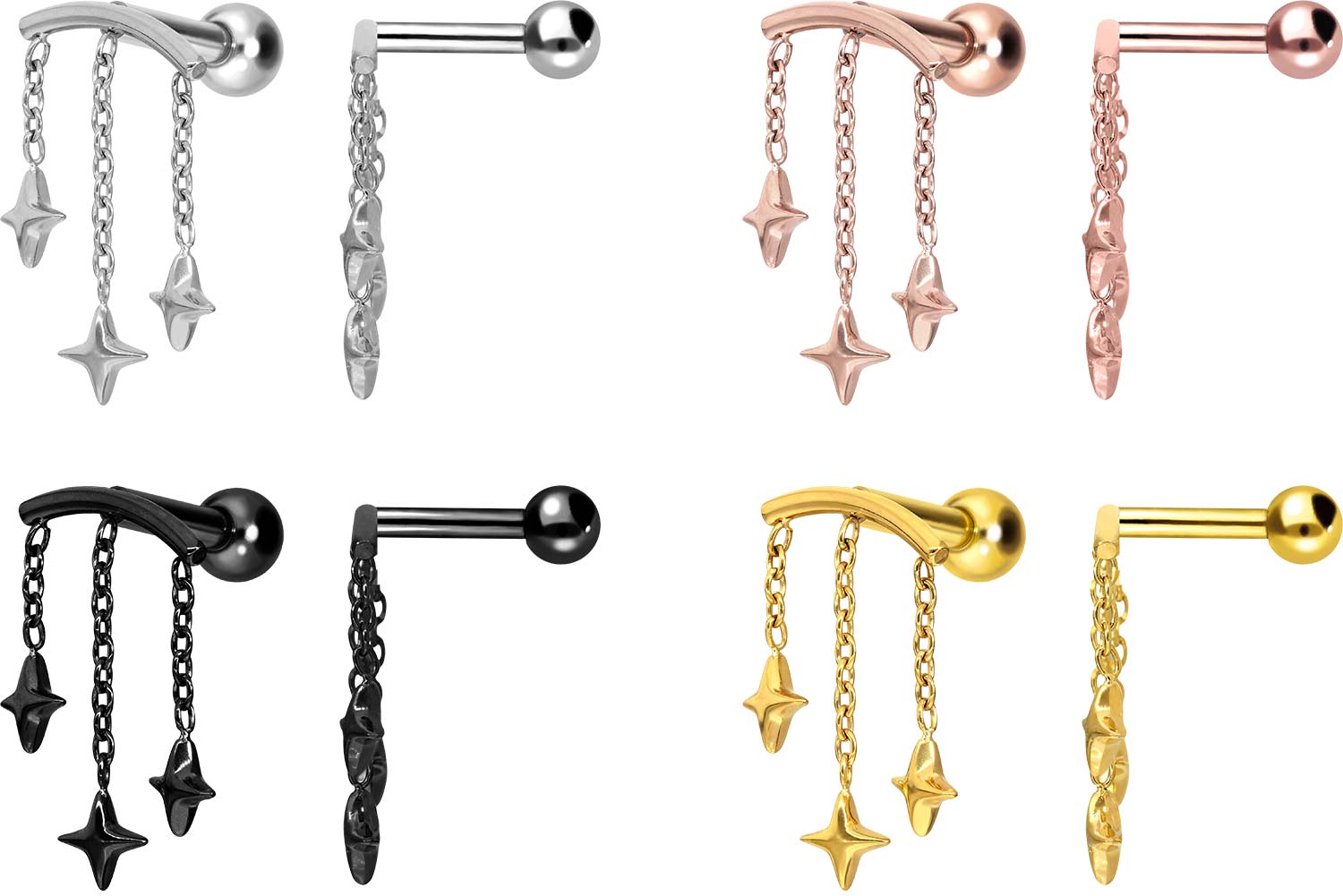 Titanium - Ear Piercing with internal Thread Arch + 3 Stars