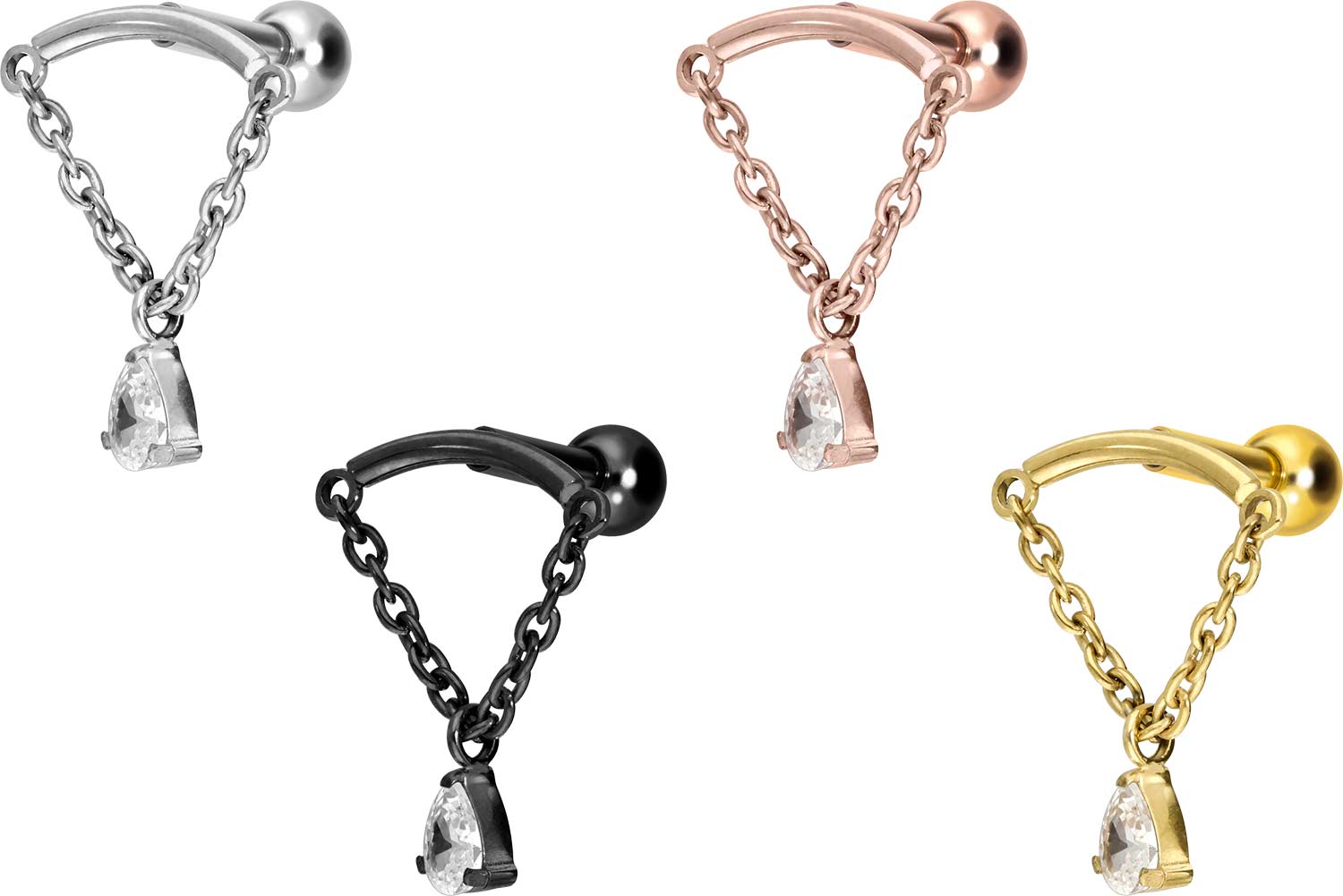 Titanium - Ear Piercing with internal Thread Arch + Chain + Crystal Drop