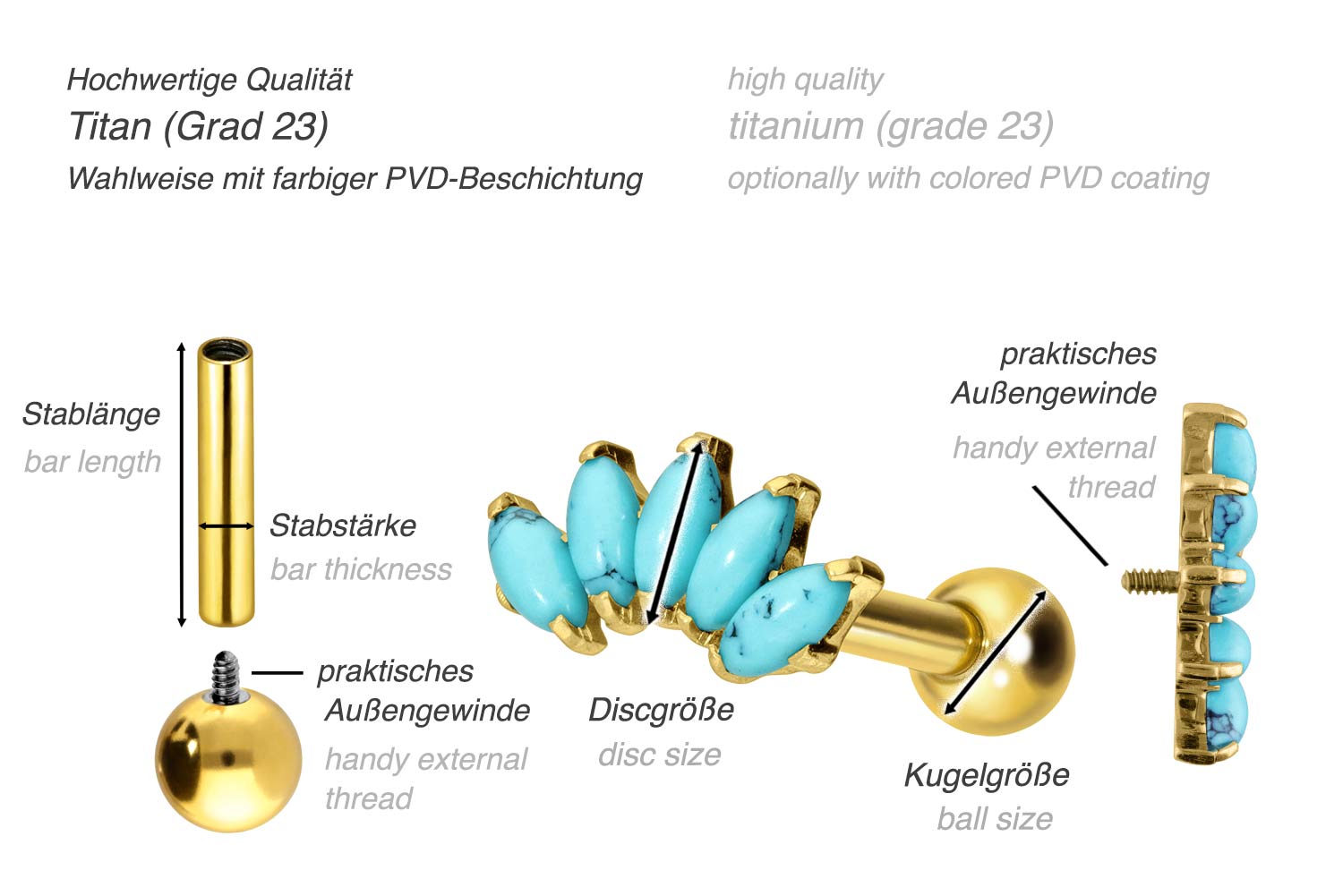 Titanium - Ear Piercing with internal Thread Arch + synthetic Turquoises