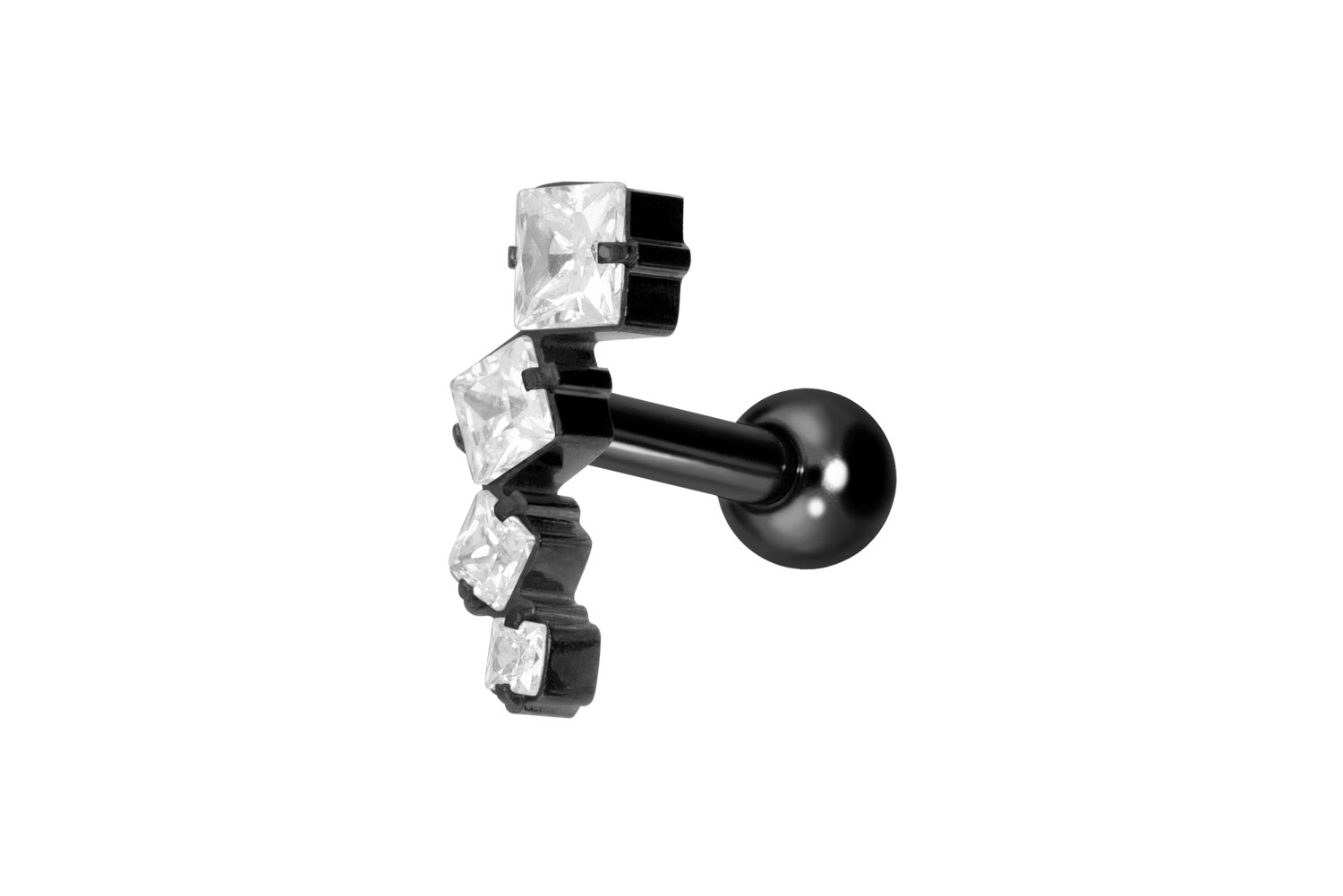 also guaranteed in the colored versions with PVD coating. Thanks to the appealing design, consisting of a timelessly beautiful screw-in attachment with external thread in form of a crystal arch, the piece of jewelry acquires a unique charm. The ear piercing has a bar thickness of 1.2 mm and a bar length of either 6 or 8 mm.