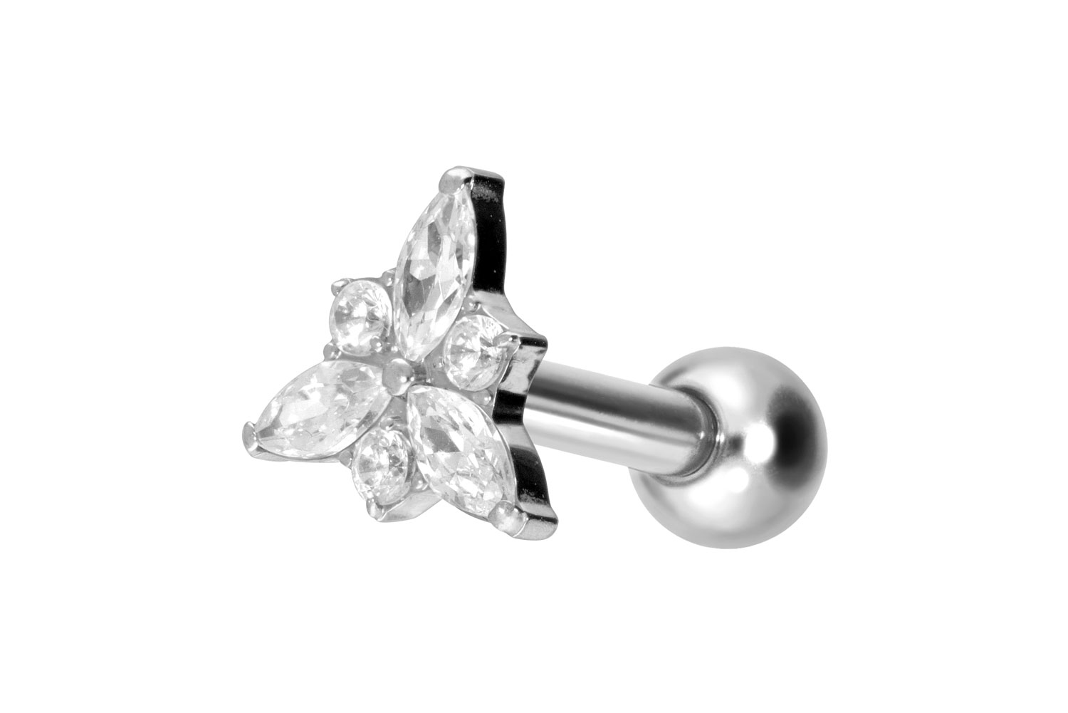 Titanium - Ear Piercing with internal Thread Crystal Blossom