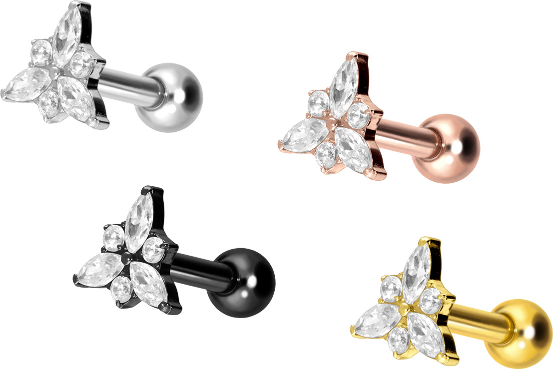 Titanium ear piercing with internal thread CRYSTAL BLOSSOM