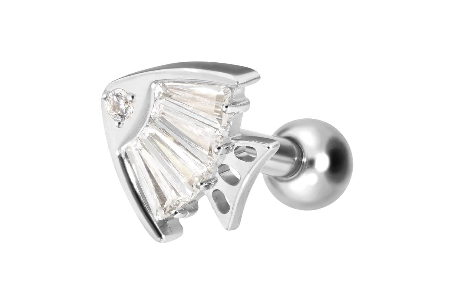 Titanium - Ear Piercing with internal Thread Crystal Fish