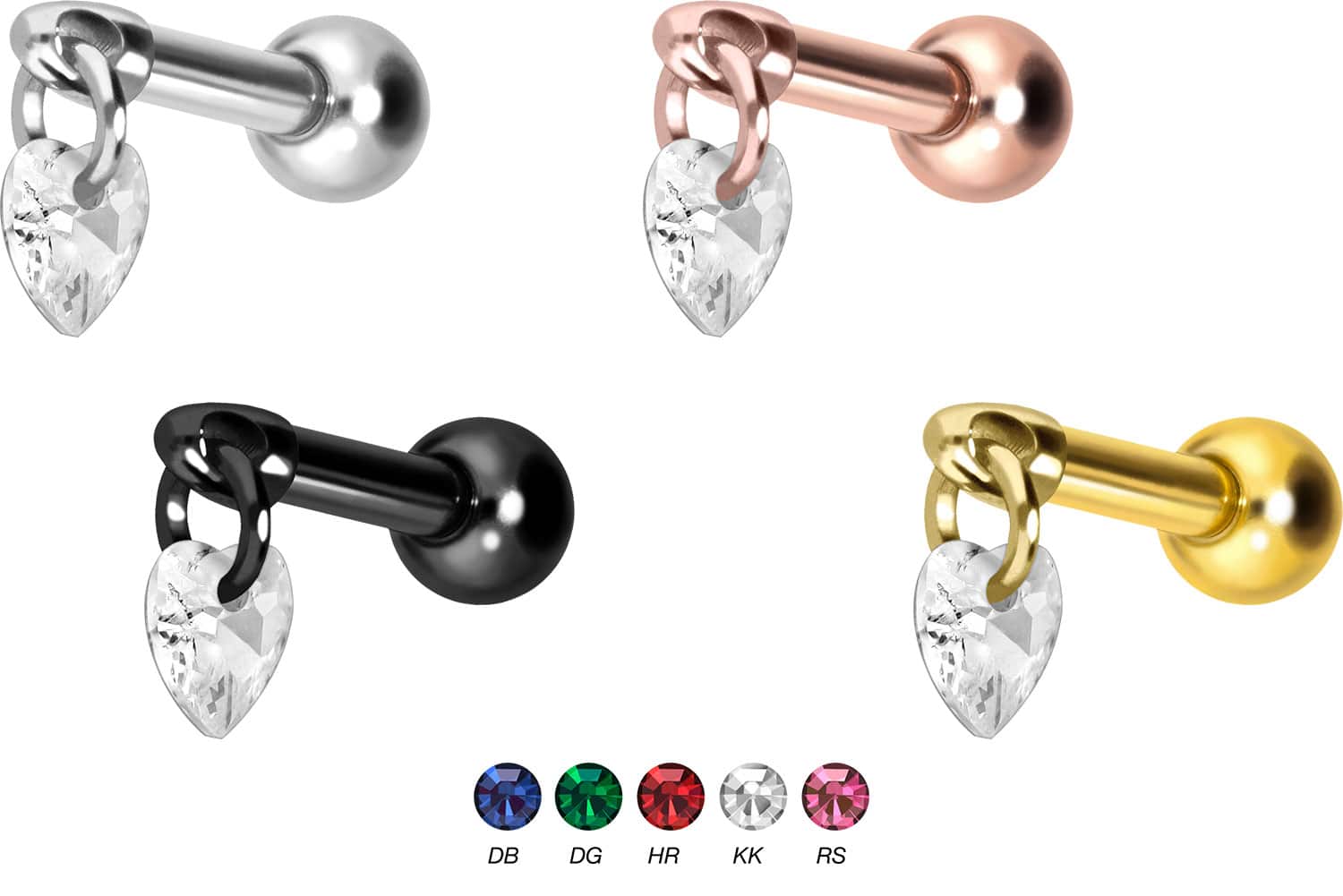 Titanium - Ear Piercing with internal Thread Crystal Heart