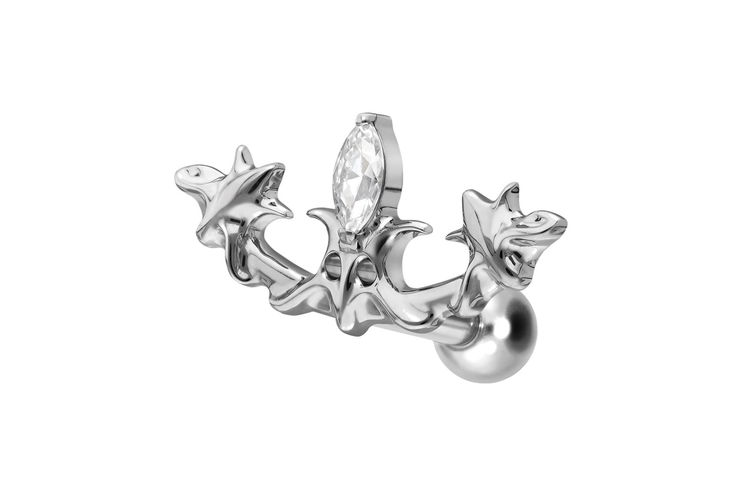 Titanium ear piercing with internal thread GOTHIC DESIGN