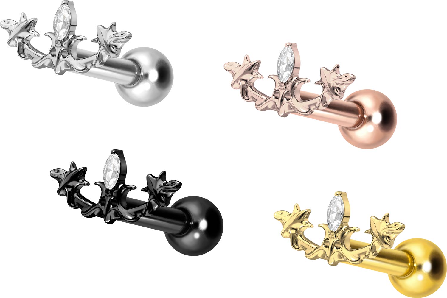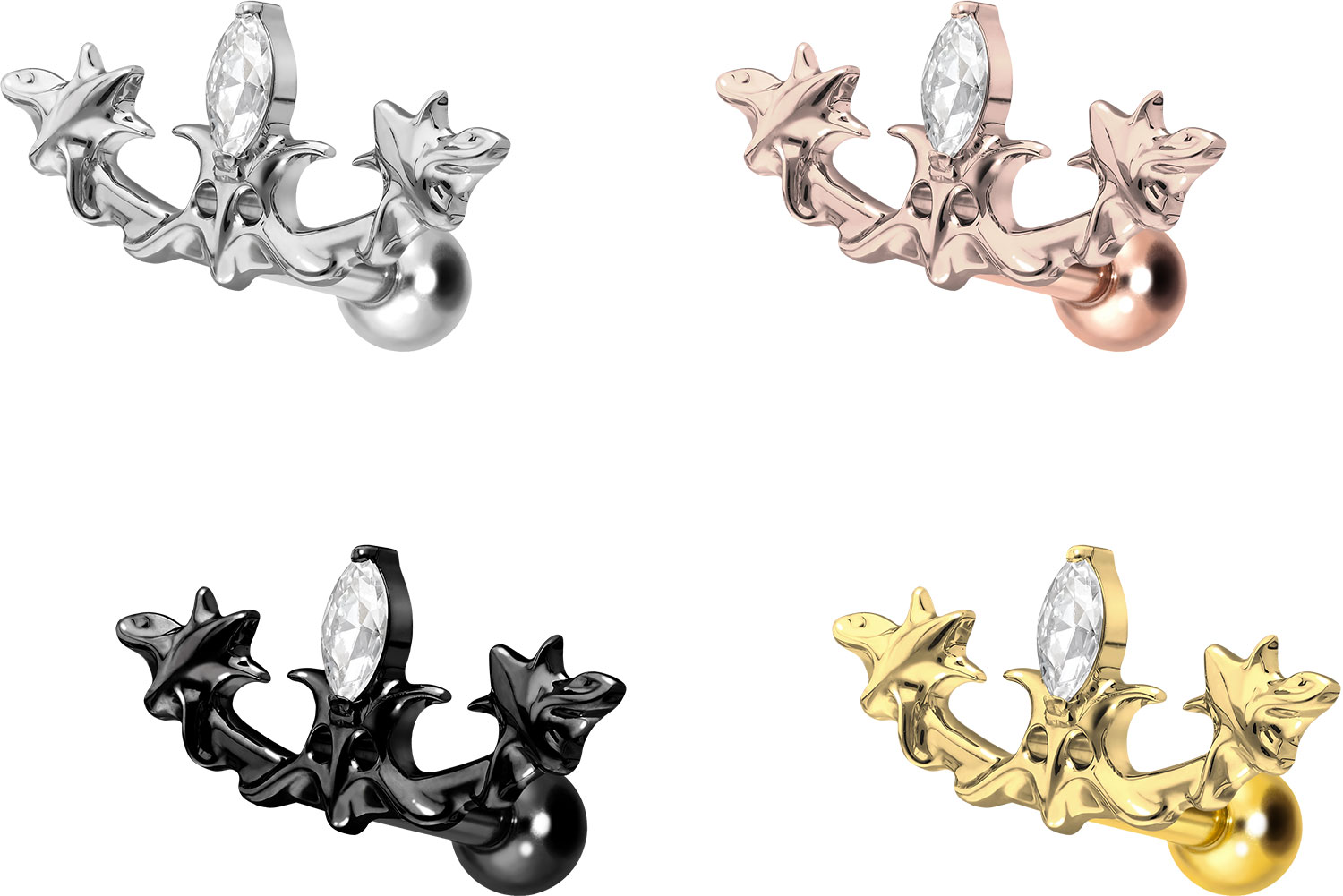 Titanium - Ear Piercing with internal Thread gothic Design