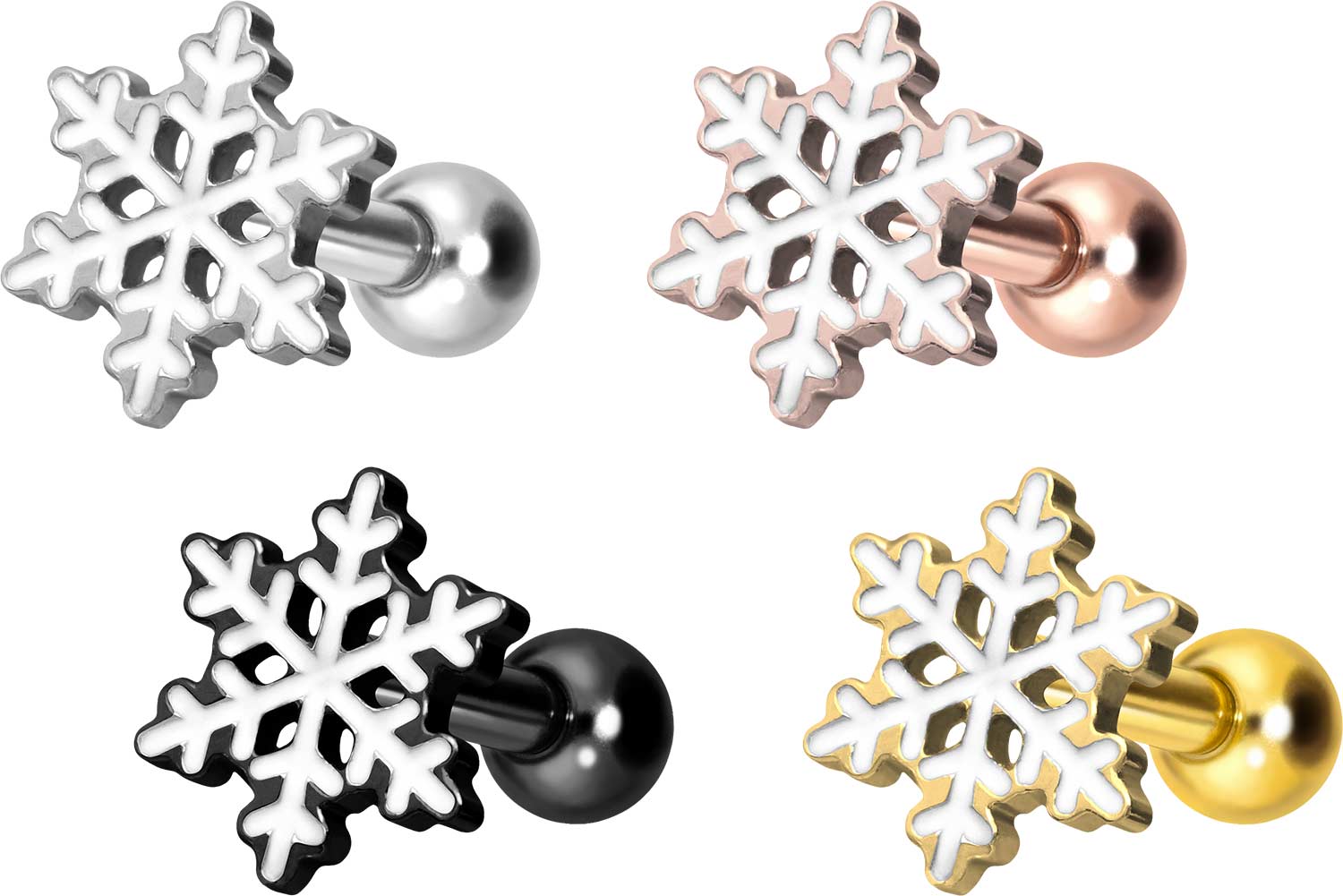 Titanium ear piercing with internal thread SNOWFLAKE