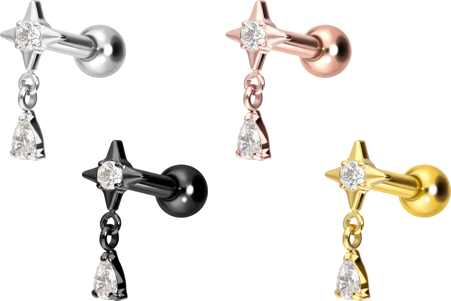 Titanium - Ear Piercing with internal Thread Star + Crystal Drop
