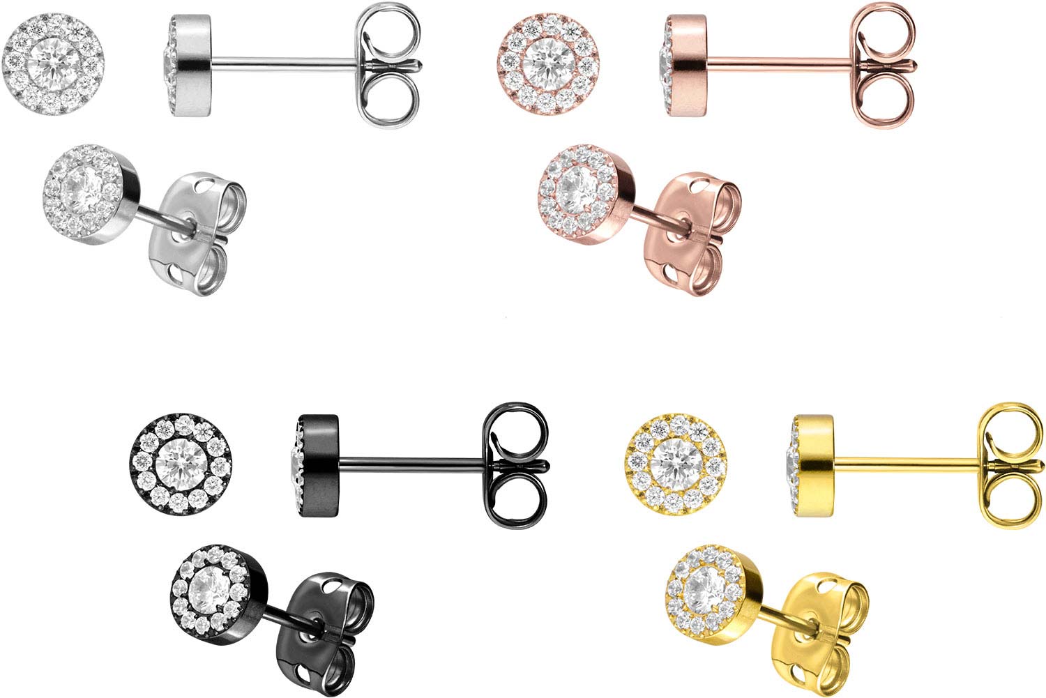 These timelessly beautiful ear studs are made of high quality titanium, which among other advantages is characterized by good skin compatibility and high durability. Another of its specific material properties is color fastness, also guaranteed in the variants with PVD coating. Both studs are adorned with a disc each, which is set with sparkling crystals and thus shines in full magnificence. They are furthermore supplied in pairs as depicted.