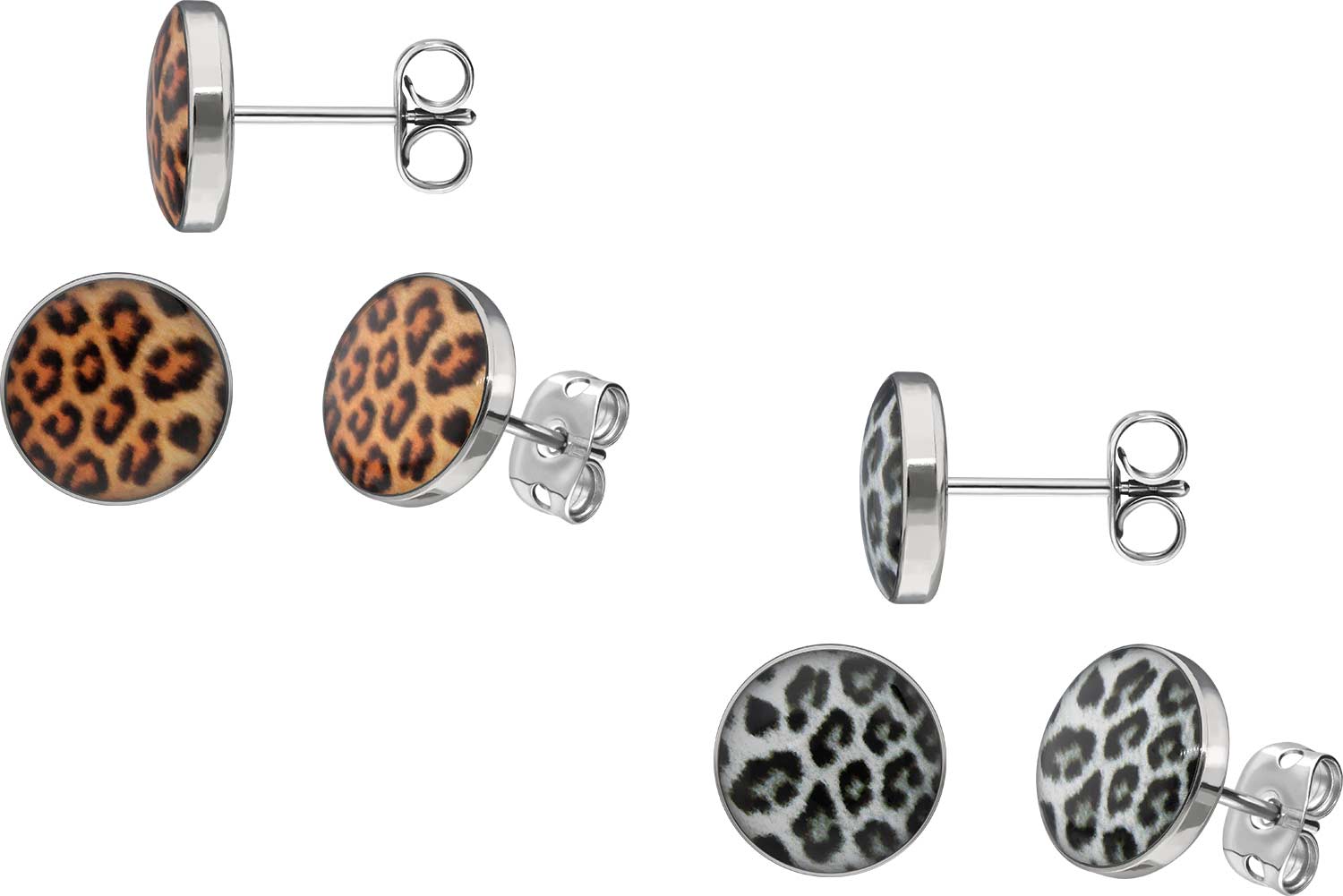 These stylish ear studs are made of high quality titanium, which among other advantages is characterized by good skin compatibility and high durability. Another of its specific material porperties is color fastness. As a special highlight, the exeptional leopard pattern adds a touch of