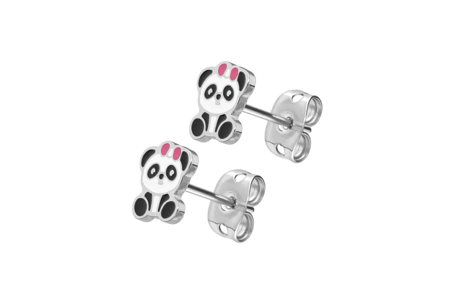 These timelessly beautiful ear studs are made of high quality titanium, which among other advantages is characterized by good skin compatibility and high durability. Another of its specific material properties is color fastness, also guaranteed in the variants with gold-colored PVD coating. The design in form of a panda, which is located at the front ends of the studs, is particularly appealing to children due to its style. They are furthermore supplied in pairs as depicted.