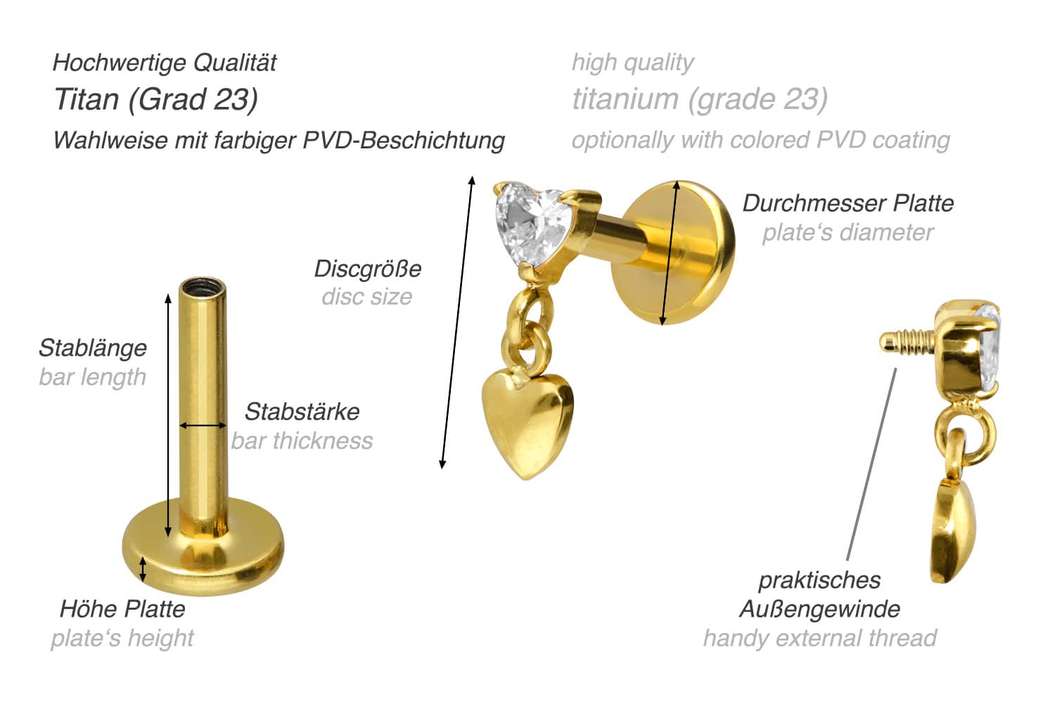 also guaranteed in the colored versions with PVD coating. The labret