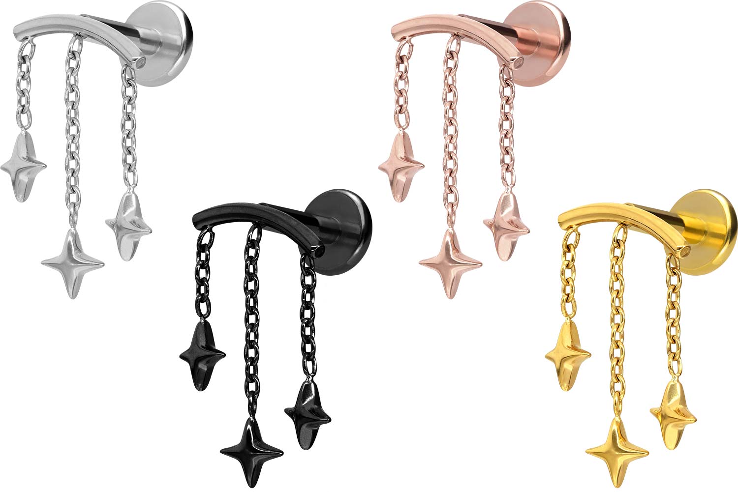 Titanium - Labret with internal Thread Arch + 3 Stars