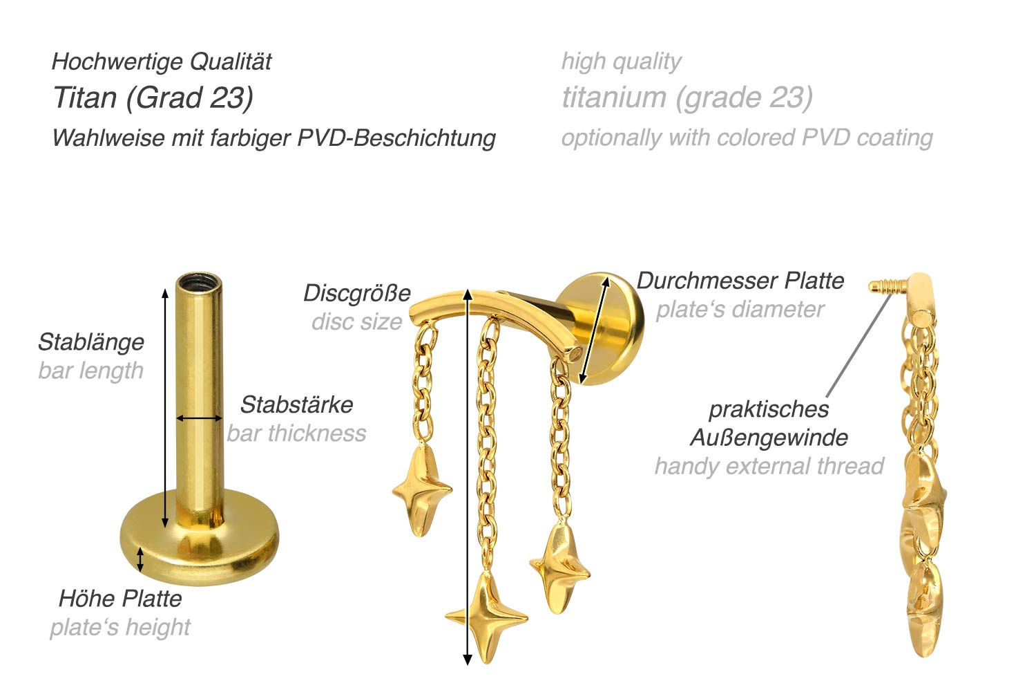 also guaranteed in the colored versions with PVD coating. The labret