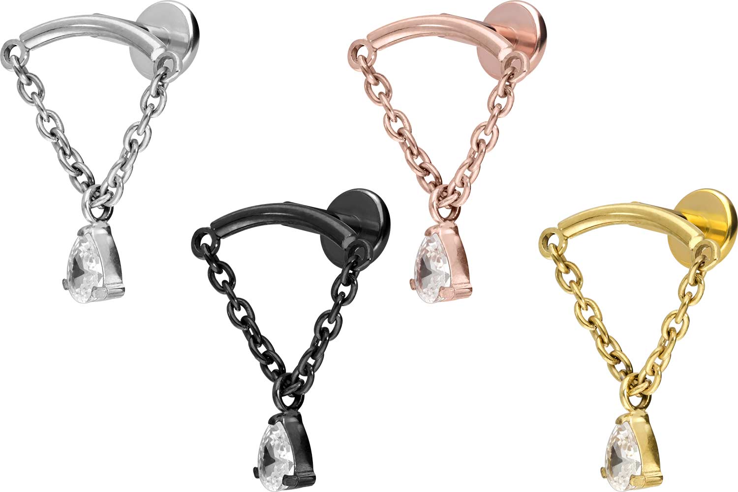 Titanium - Labret with internal Thread Arch + Chain + Crystal Drop