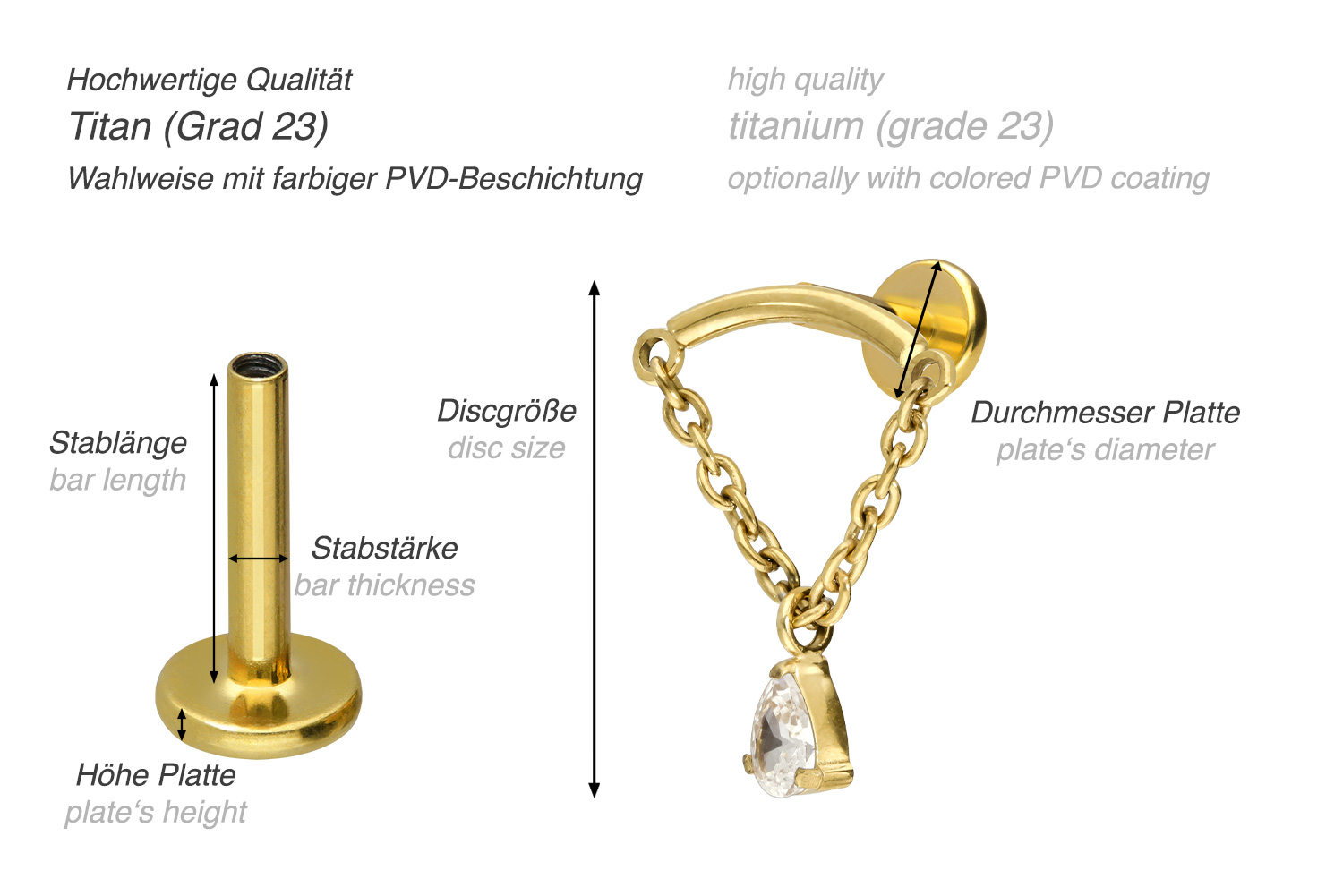also guaranteed in the colored versions with PVD coating. The labret